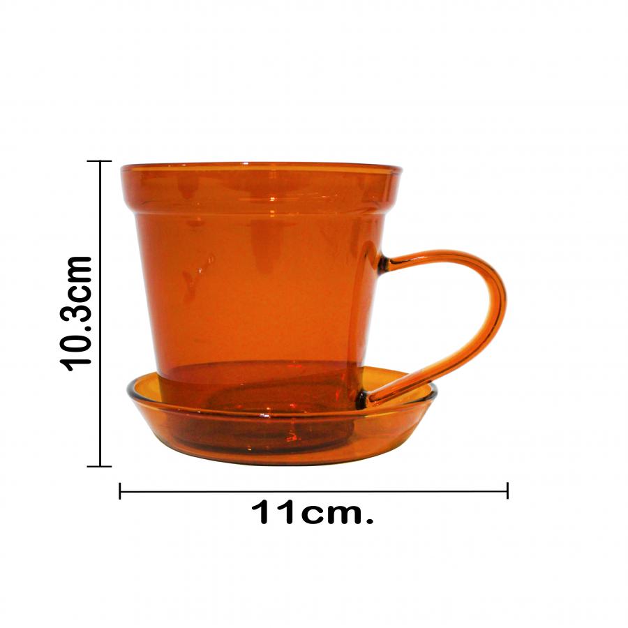 Juego de taza de vidrio ámbar con platillo y cuchara de 300 ml de 9×11.10 cm