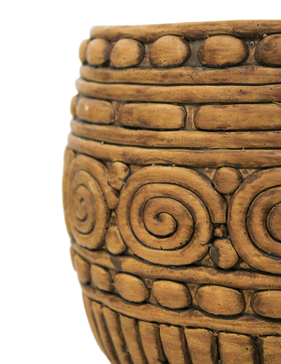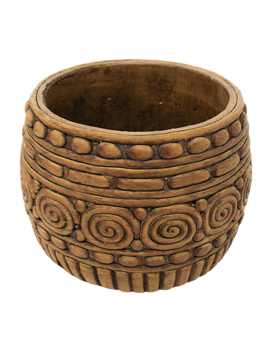 Maceta de cemento beige con circulos y puntos de 27.5×27.5x21cm