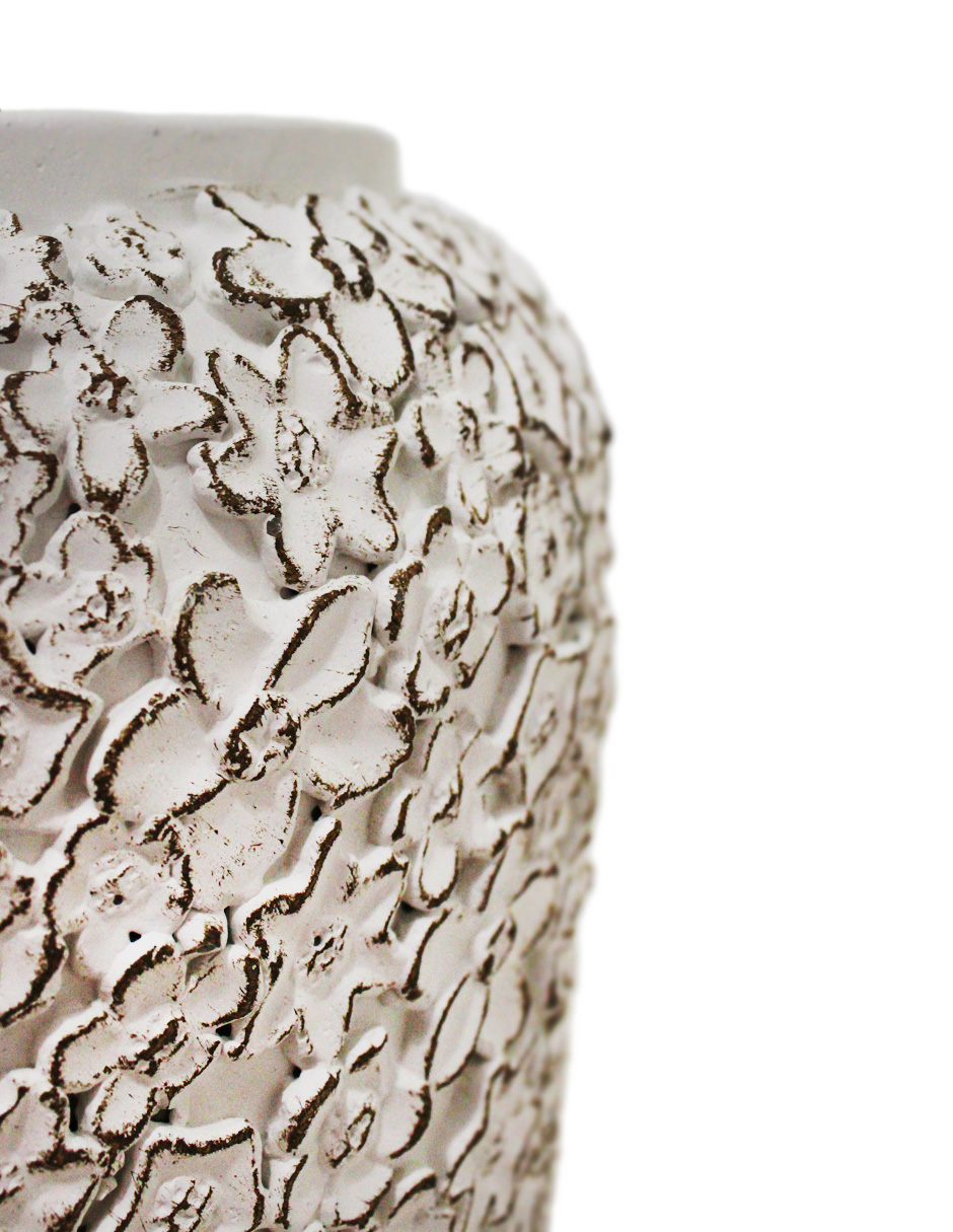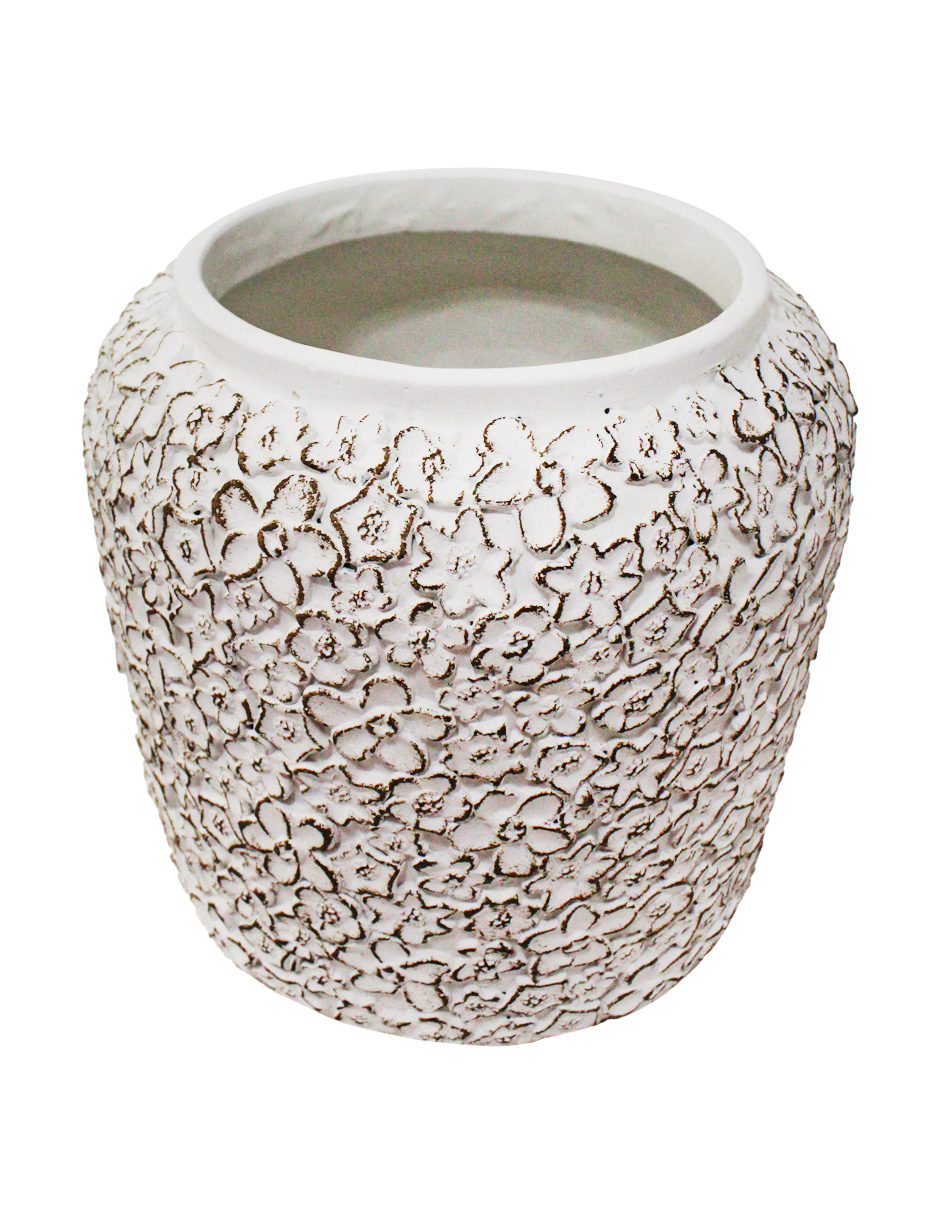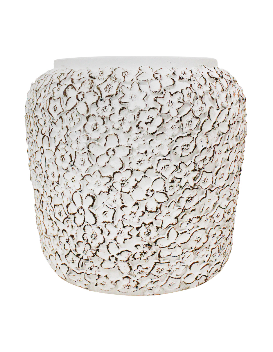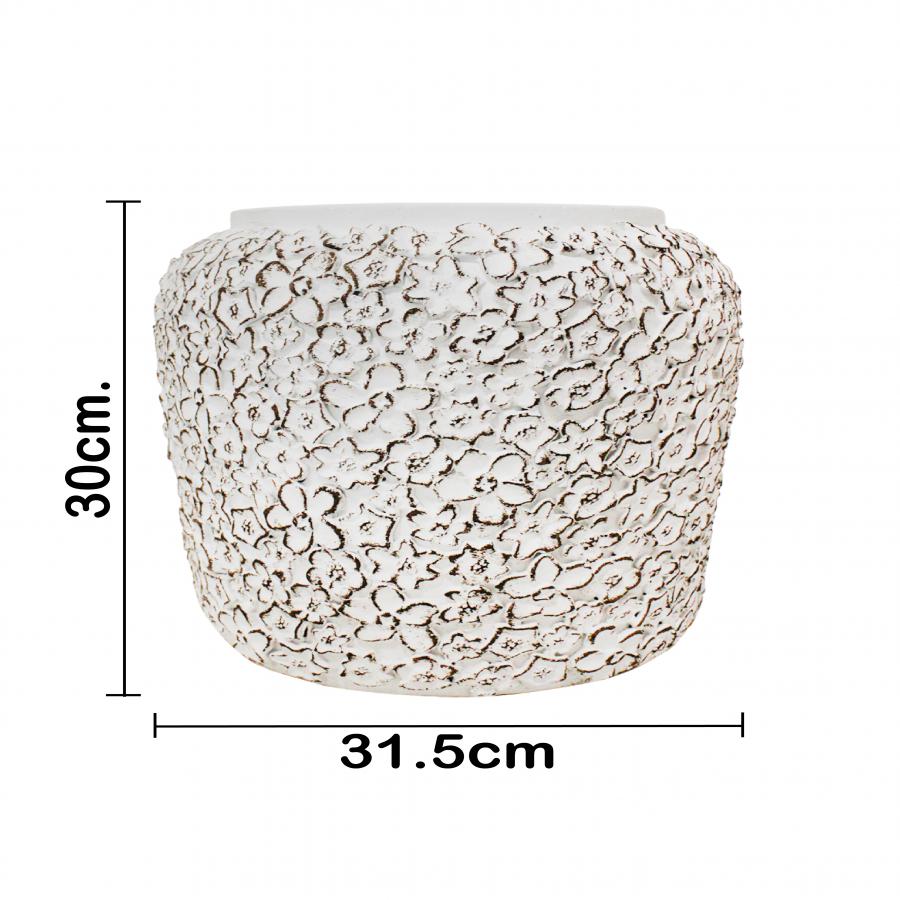 Maceta de cemento blanca con diseño flores de 31.5×31.5x30cm