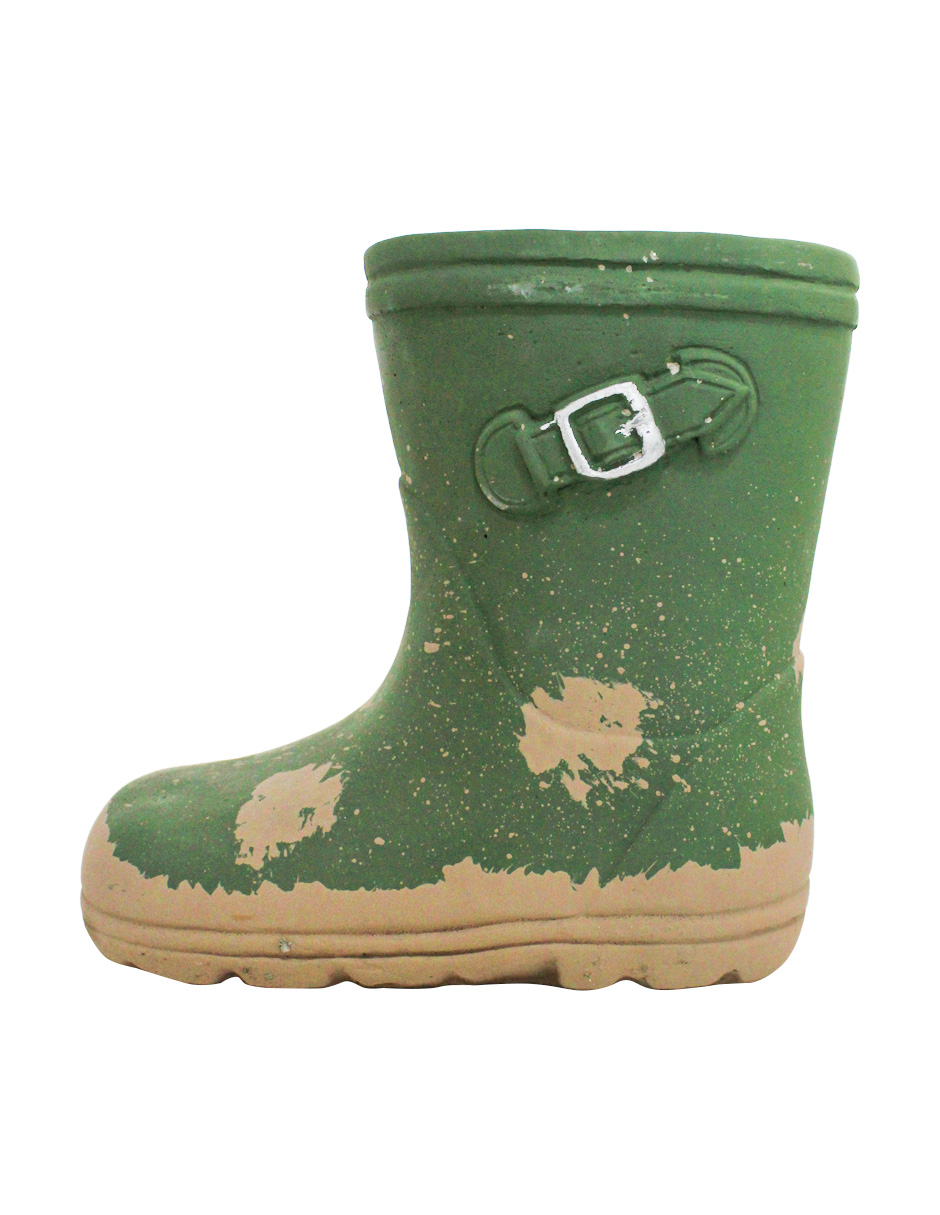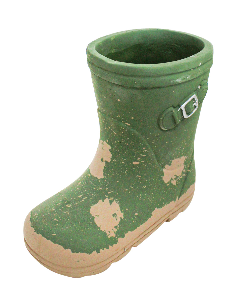 Maceta de cemento diseño bota verde de 22.5x11x20cm