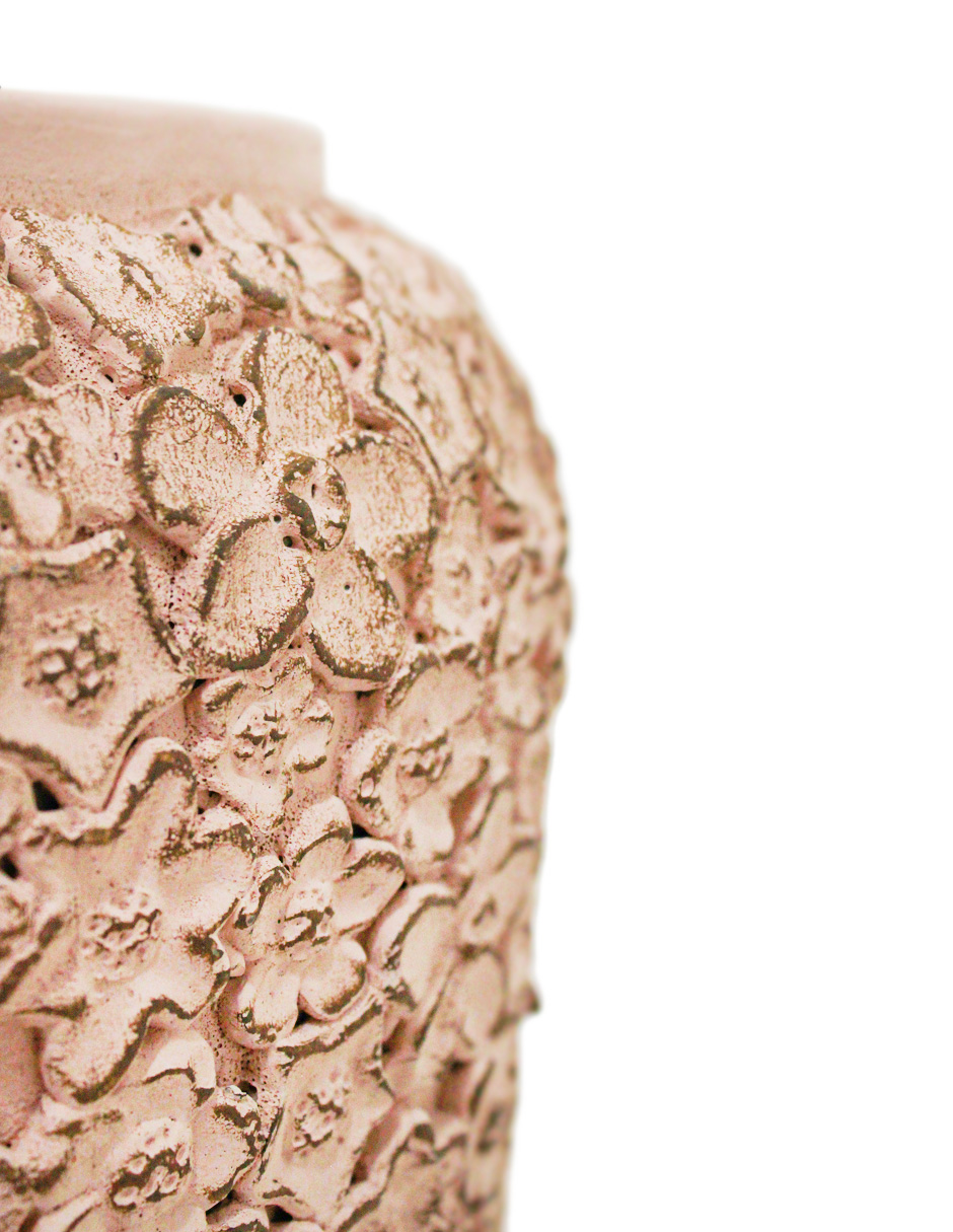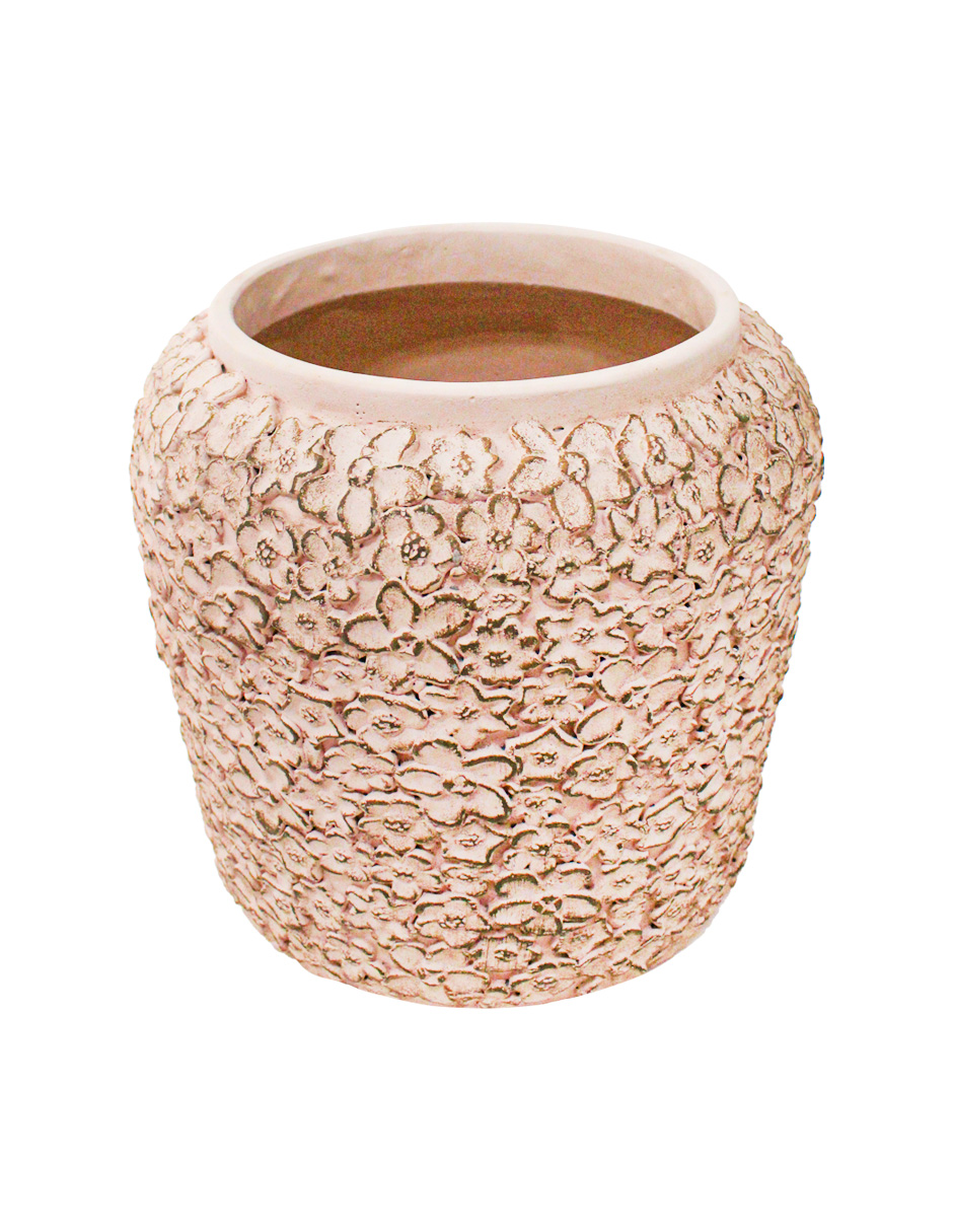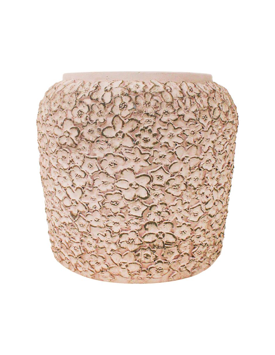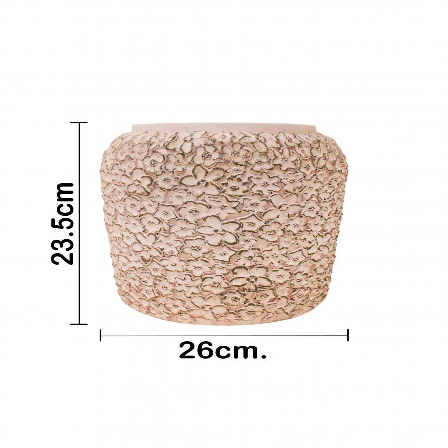 Maceta de cemento rosa con diseño flores de 25x25x24cm