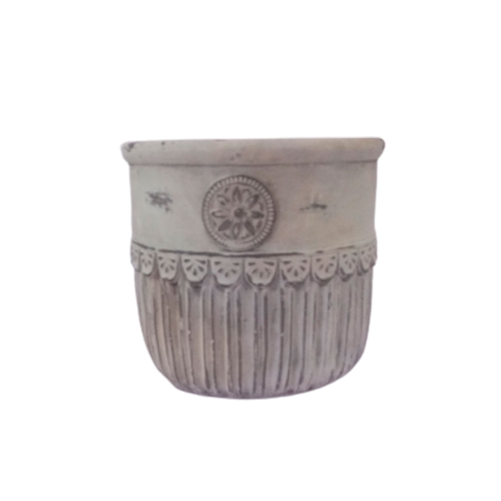 Maceta gris de cemento diseño encaje de13.5×13.5×12.5cm