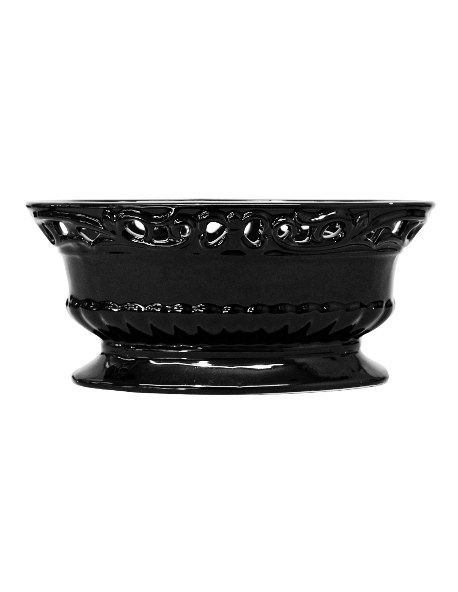 Dale un toque de sofisticación a tus plantas. Esta maceta ovalada de porcelana negra con una delicada orilla calada es ideal para realzar la belleza de tus plantas. Su diseño minimalista y elegante te hará sentir el orden y el refinamiento. Mide 21.5×10.5×9.5cm.