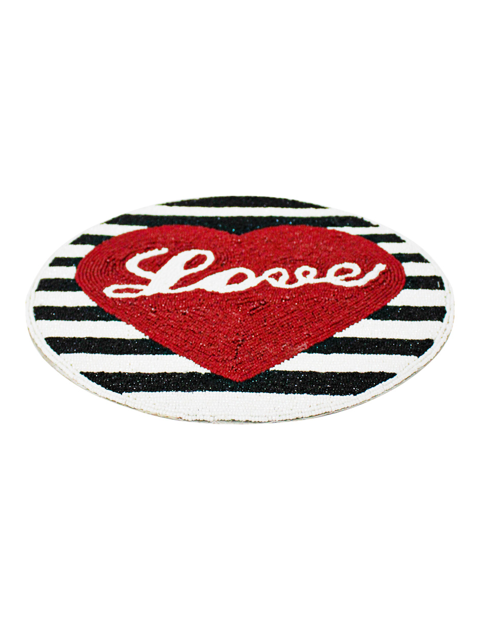 Viste tu mesa con un mensaje de amor. Este mantel individual bordado de chaquiras diseño corazón con la palabra “Love” es perfecto para añadir un toque romántico y dulce. Te hará sentir la calidez y el afecto en cada ocasión.