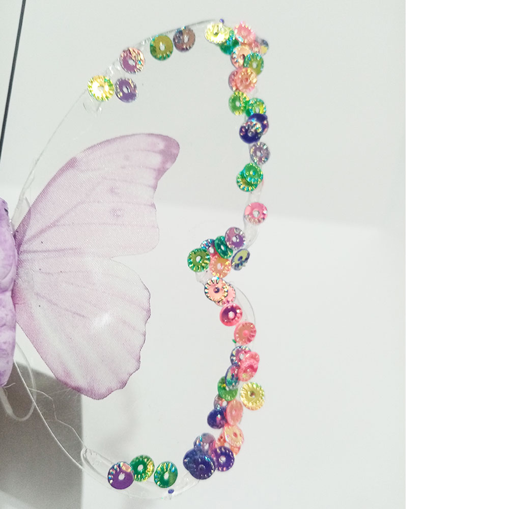 ¡Agrega un toque de magia a tu decoración! Mariposa púrpura transparente con pinza, medidas 8×10.5x2cm. ¡Compra ahora y embellece tu espacio con encanto!