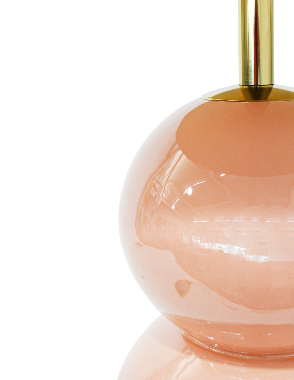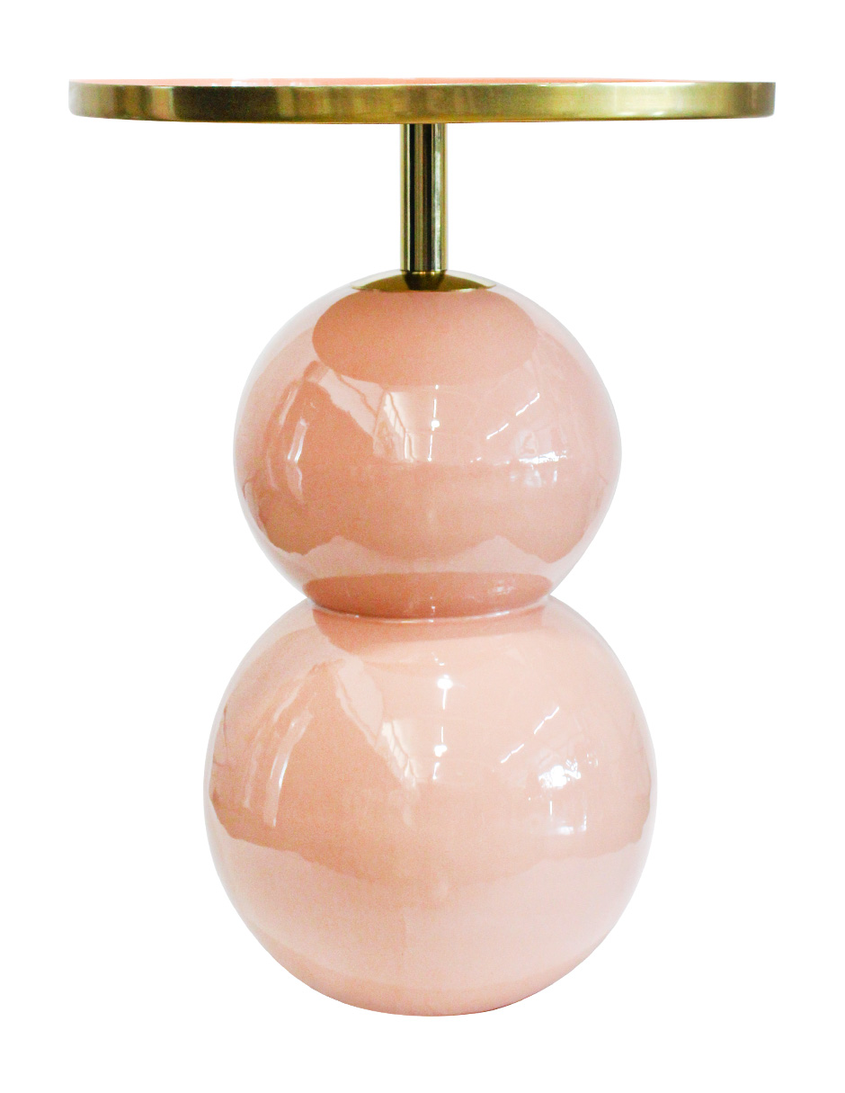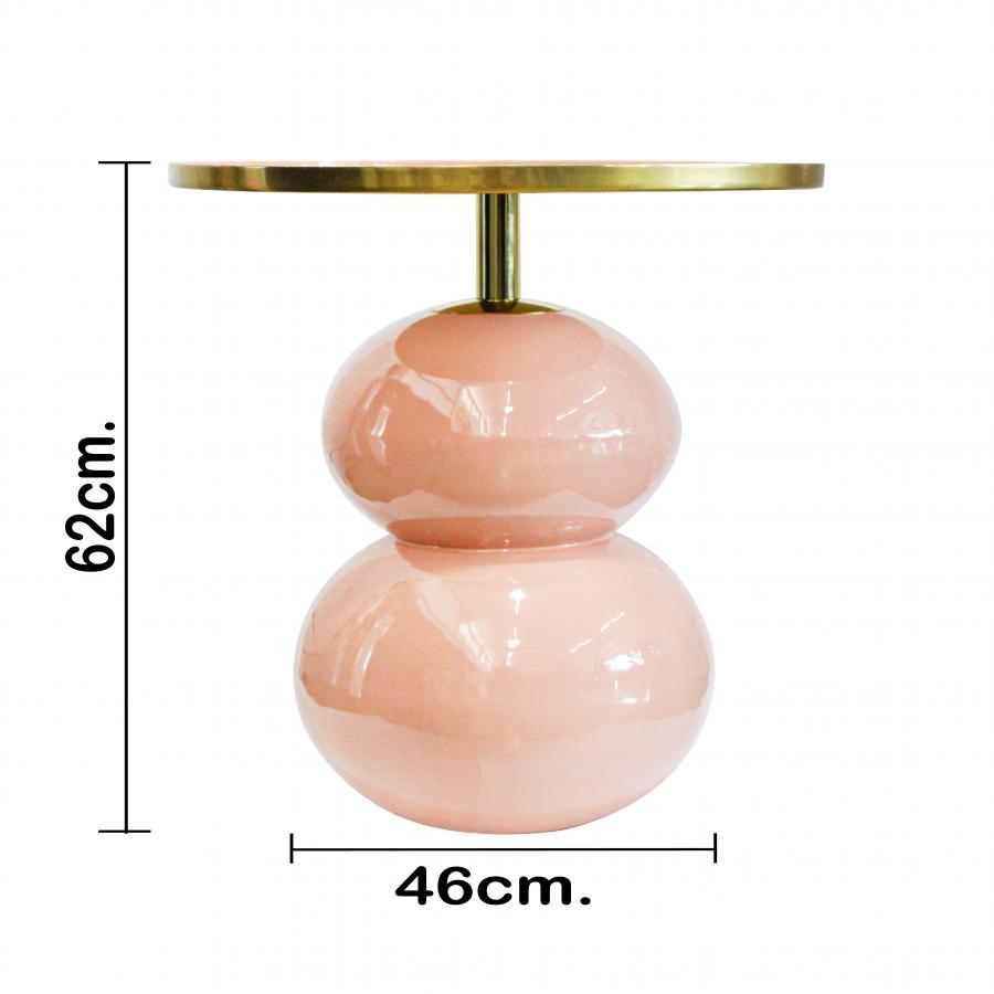 Mesa de metal con base de esferas durazno brillante de 46x46x62cm