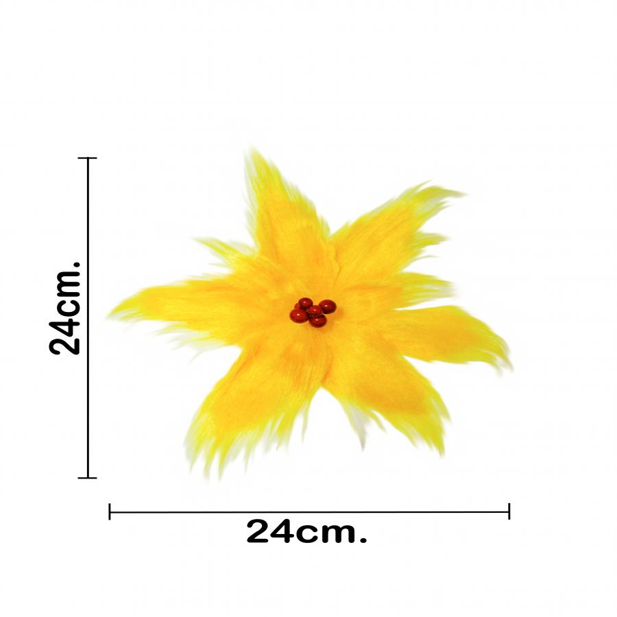 Llena tu hogar de vida con esta festiva nochebuena de peluche amarillo. Sus berries rojos te harán sentir la vitalidad y la calidez. Es perfecta para colocar en el árbol, coronas o guirnaldas, dándole un toque vibrante y único a tu decoración. Medidas: 14x14x12 cm.