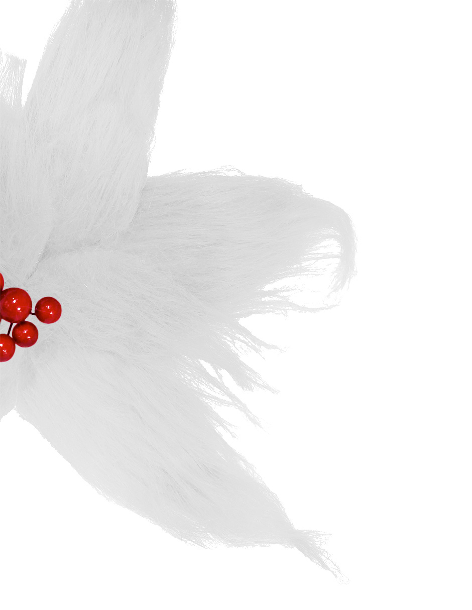 Llena tu hogar de vida con esta festiva nochebuena de peluche blanca. Sus berries rojos te harán sentir la vitalidad y la calidez. Es perfecta para colocar en el árbol, coronas o guirnaldas, dándole un toque vibrante y único a tu decoración. Medidas: 14x14x12 cm.