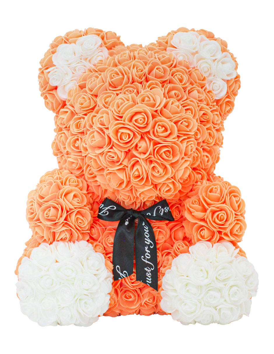 Oso forrado de flores naranja con blanco de 26x26x34.5cm