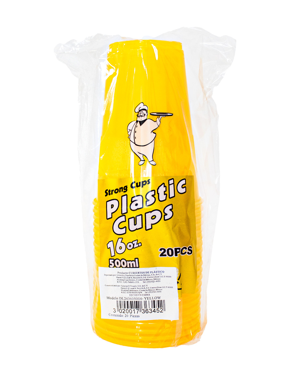 Paquete de 20 vasos de plástico amarillo de 500ML