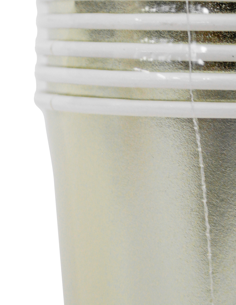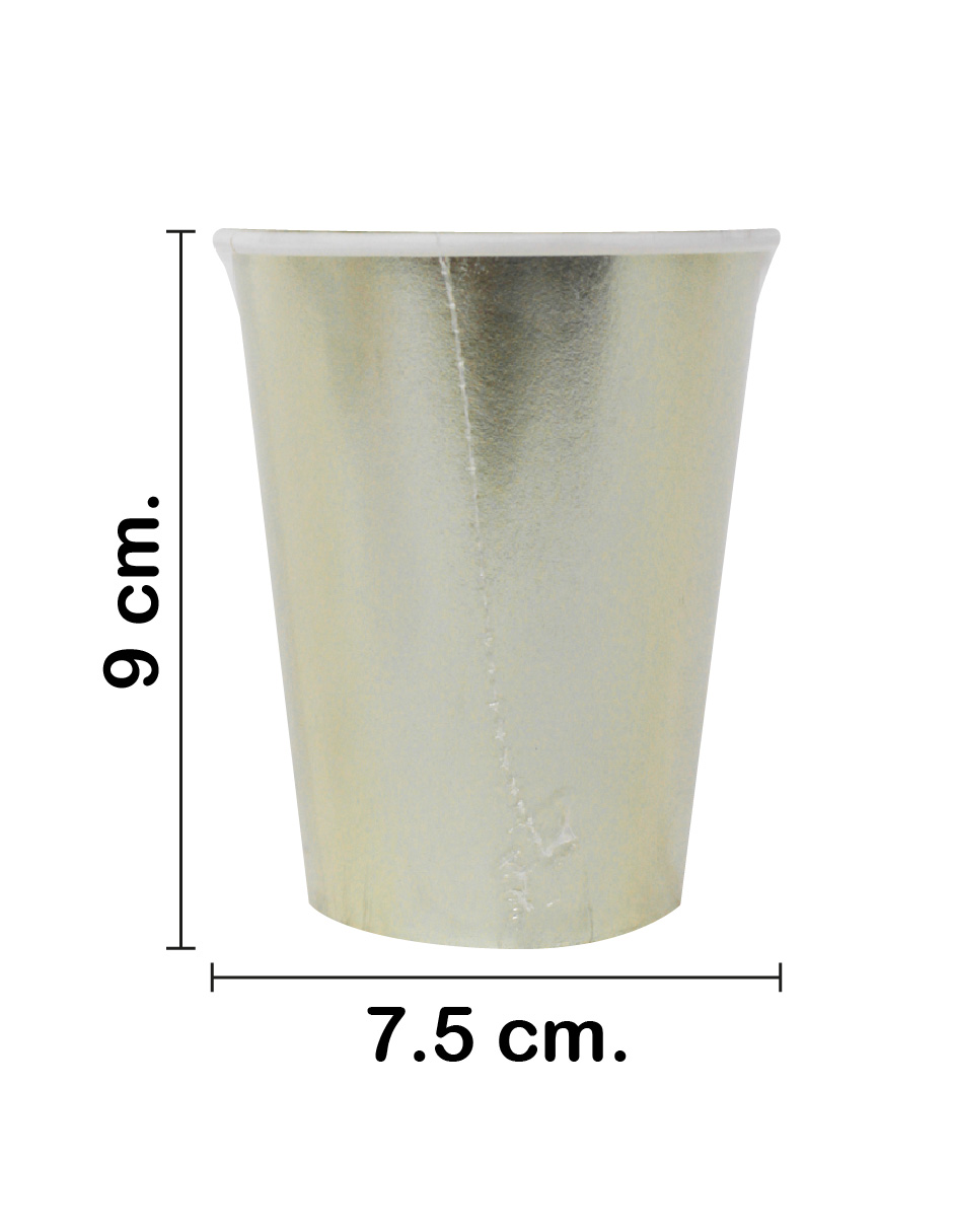 Paquete de 8 vasos desechables dorados de 250 ml y 7.5×7.5×13 cm