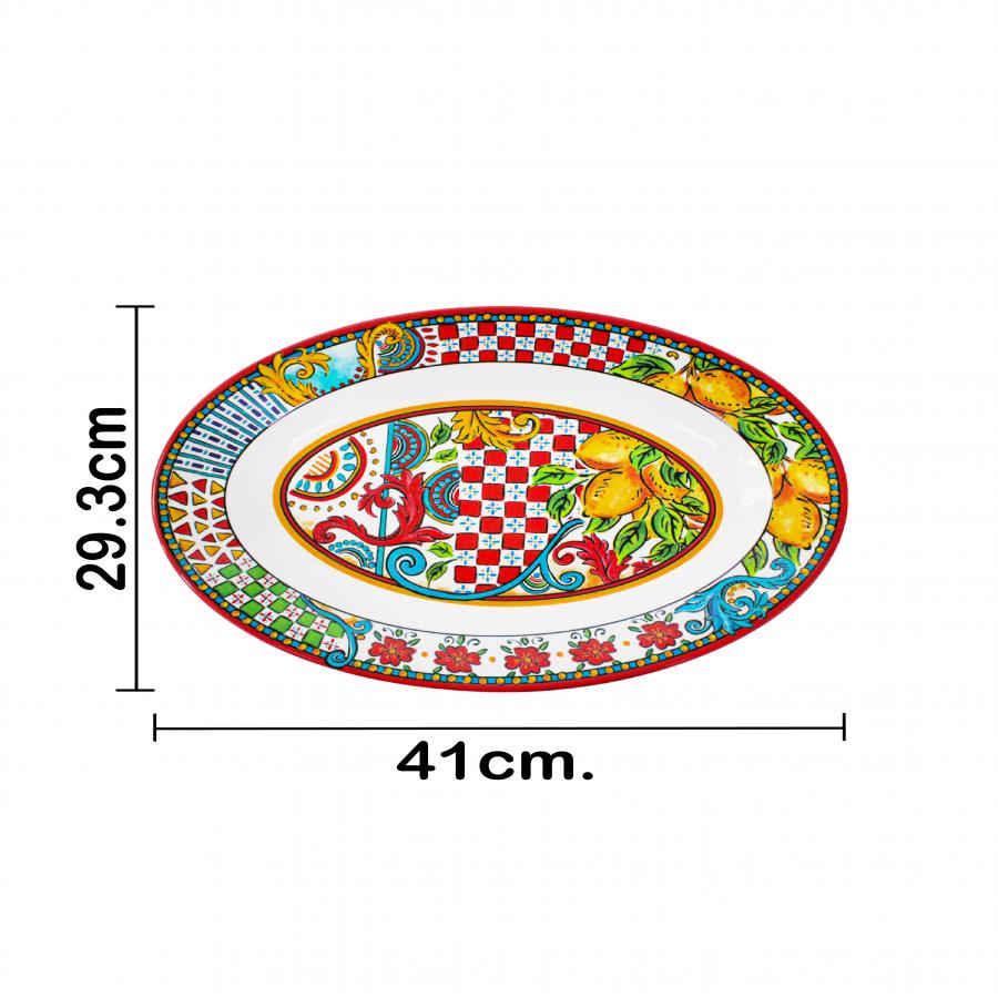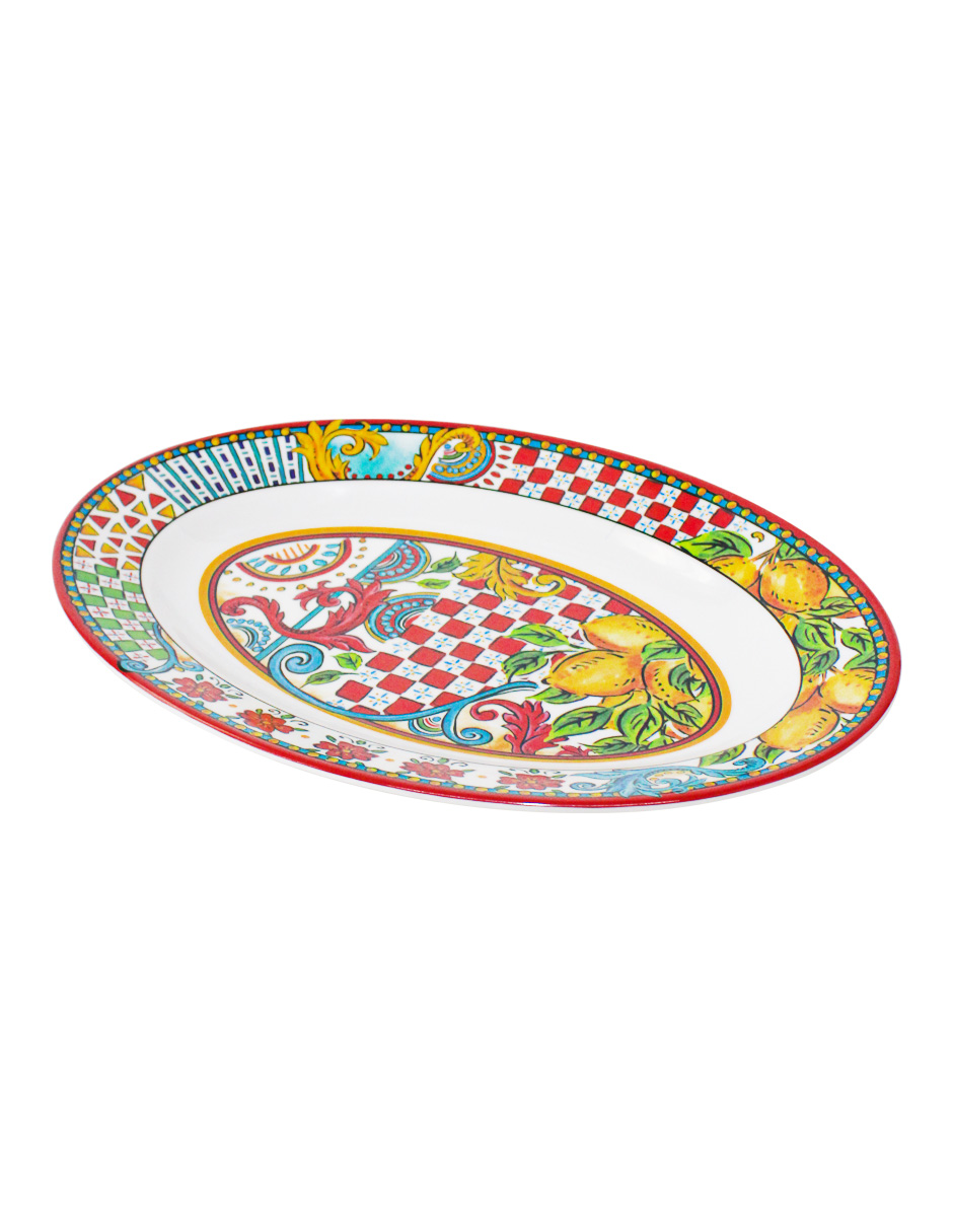 Platón ovalado de melamina con estampado limones de 40.5×29.5 cm