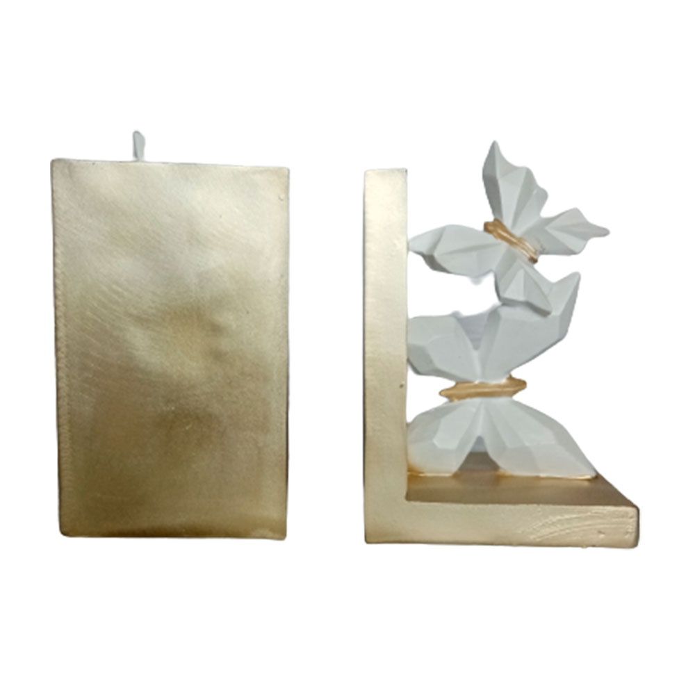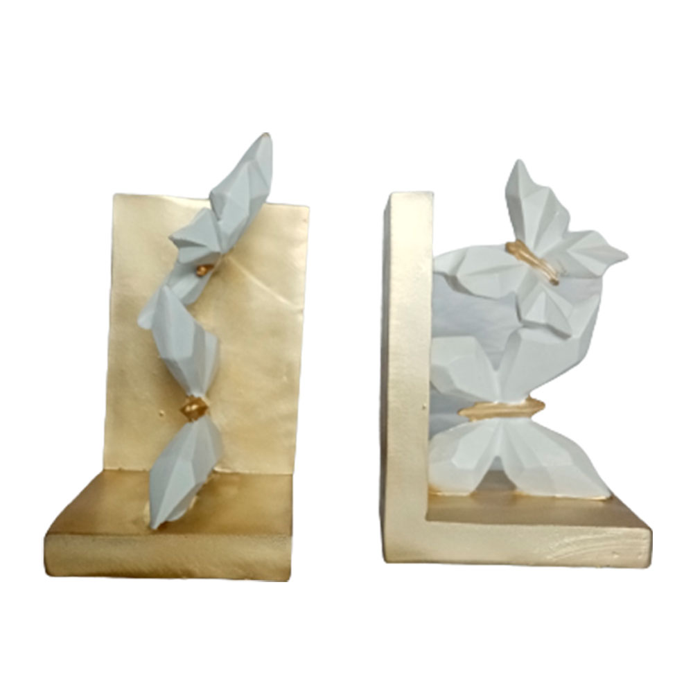 Porta libros dorado diseño mariposas blancas de poliresina de 12x10x19cm