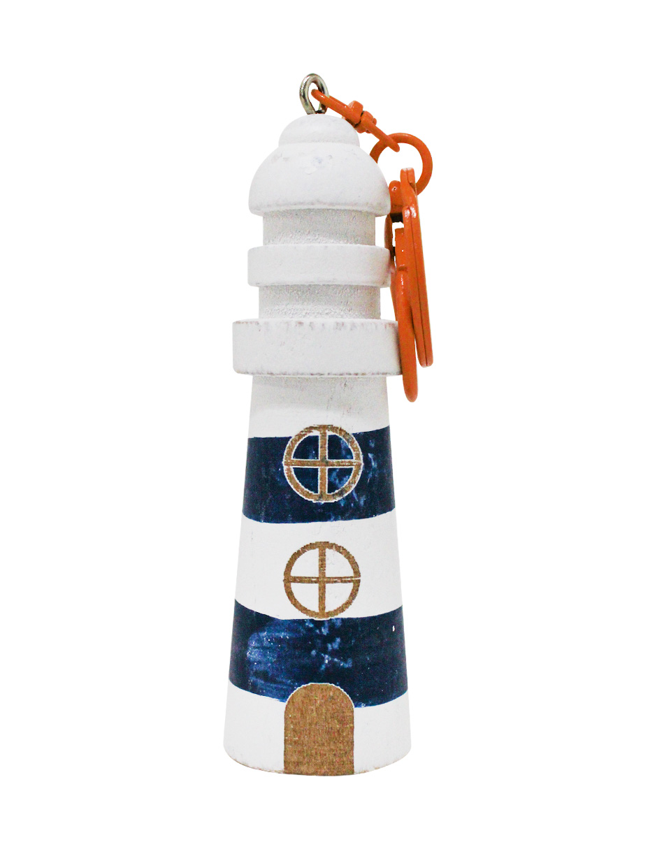 Porta llaves con un original diseño de casa y 20 llaveros estilo faro. Esta pieza es ideal para quienes buscan una decoración marinera y funcional. Su diseño único evoca una sensación de frescura y tranquilidad, perfecta para mantener tus llaves organizadas. Material: madera, metal.