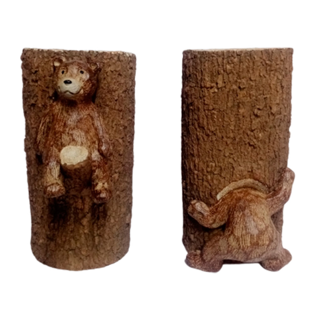 Portalibros con osos de resina en tronco de 21.5x11x20cm
