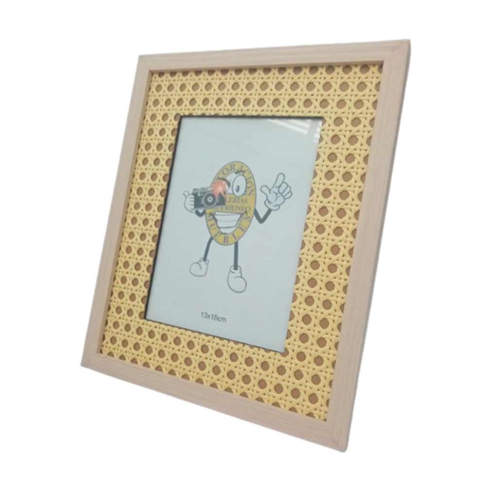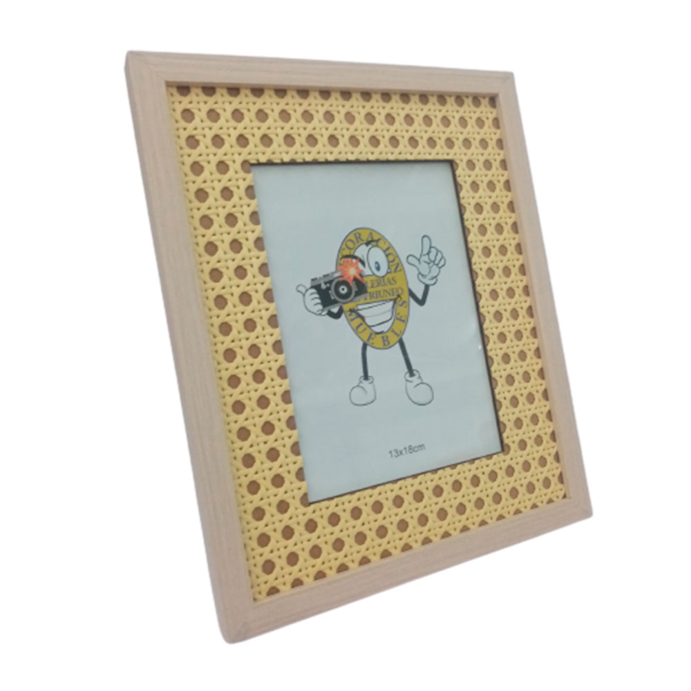 Portarretrato de madera con rattan tejido natural de 13x18cm