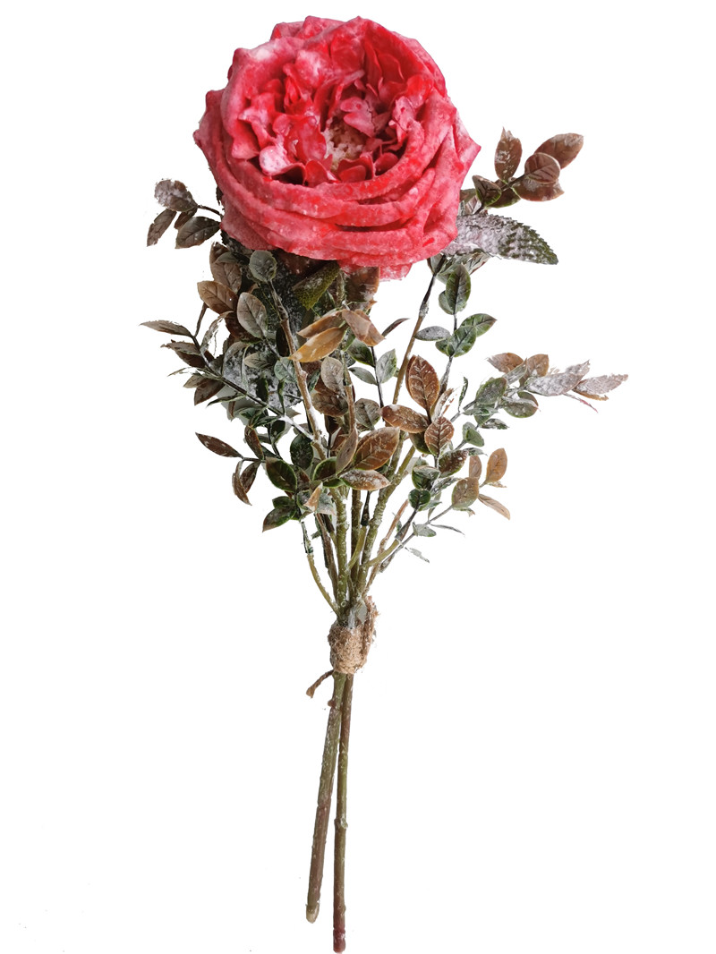 Rama de flor de rosa artificial roja de 50cm