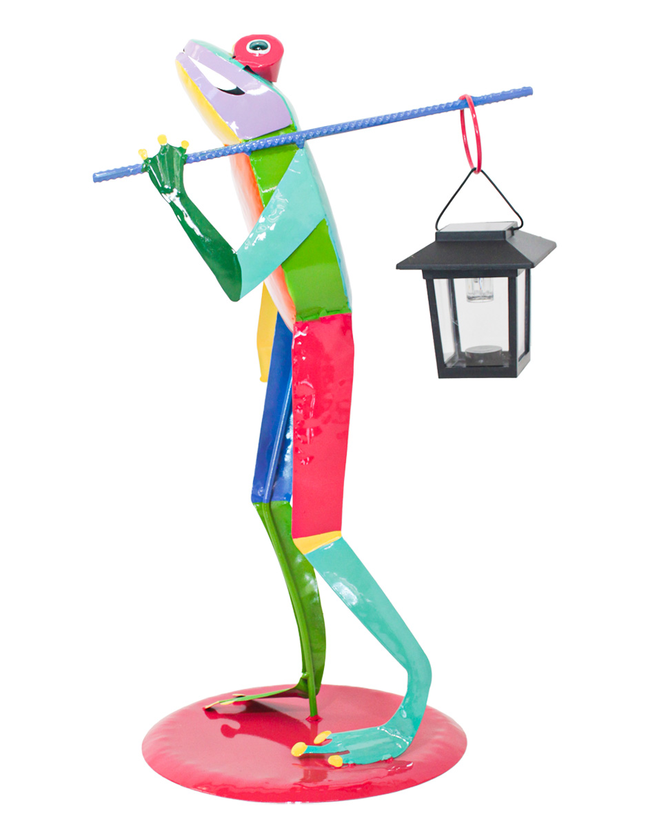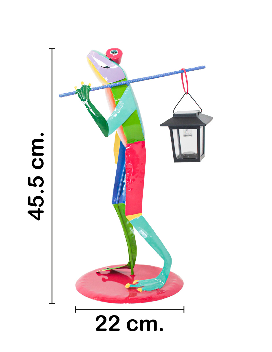 Rana de metal con linterna de colores con luz solar de 16×26.5×45.5cm