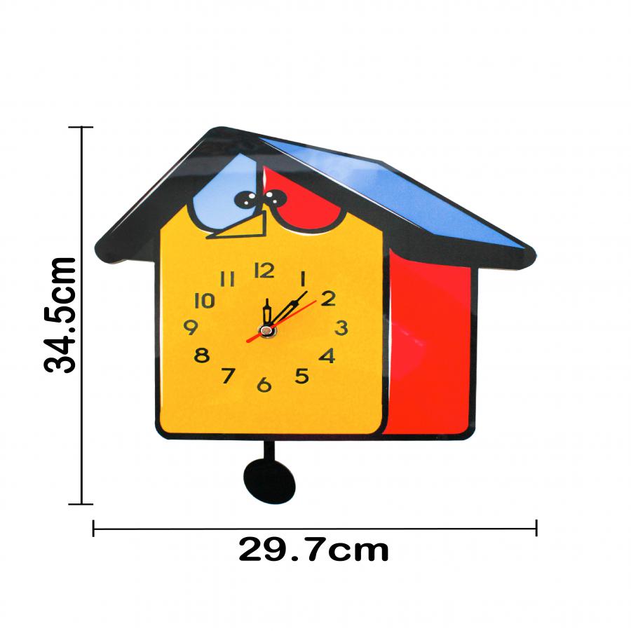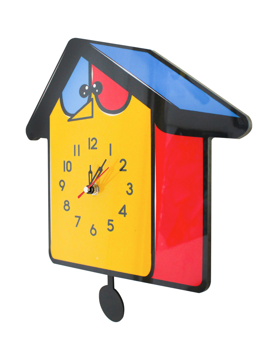 Este reloj de pared es una pieza de arte funcional que combina un diseño divertido y original. Su forma de casa con ojos de pájaro y la vibrante combinación de colores le dan un toque único y alegre a cualquier espacio. Fabricado en madera con recubrimiento de acrílico, este reloj no solo es resistente y duradero, sino que también aporta mucha personalidad a tu decoración.