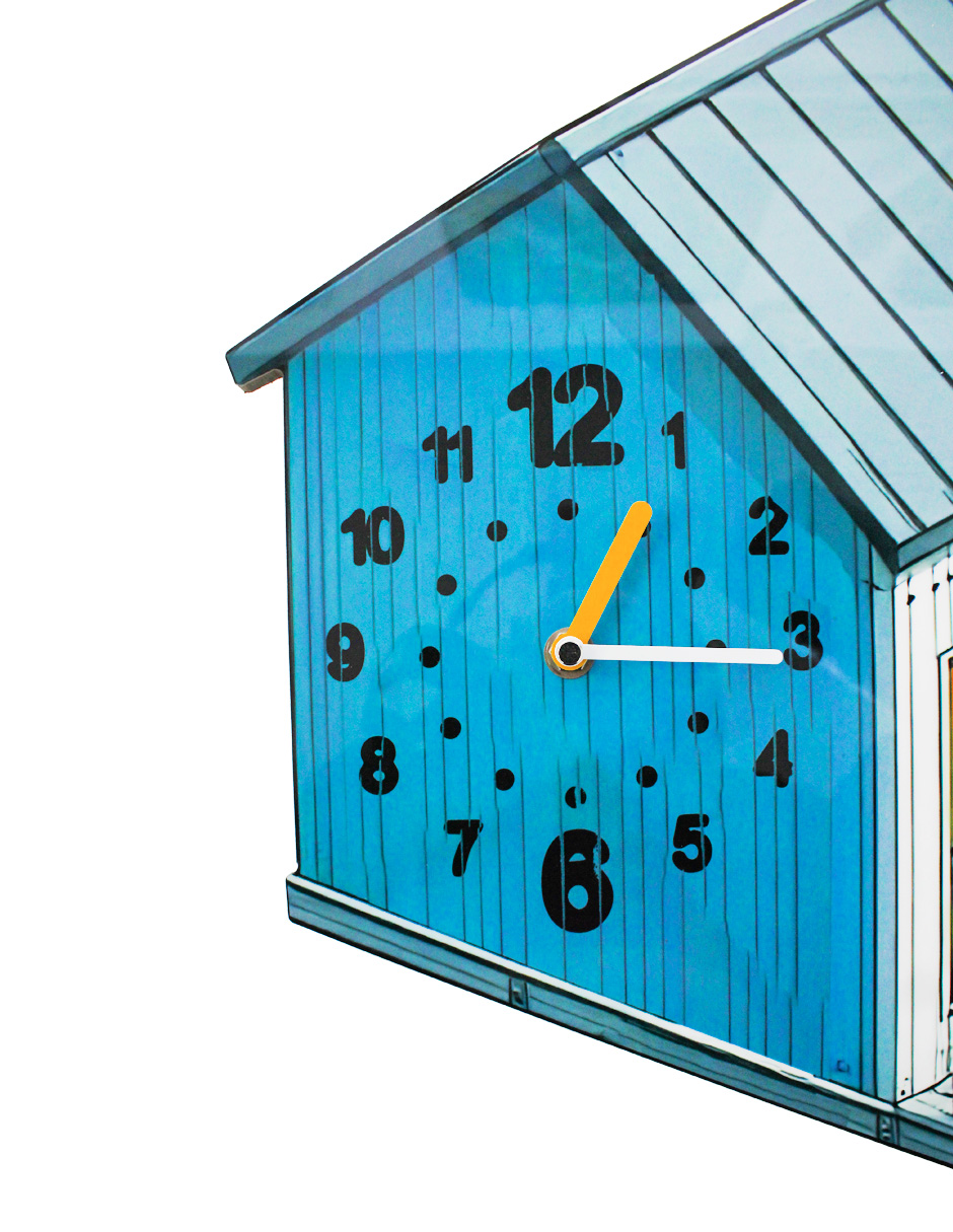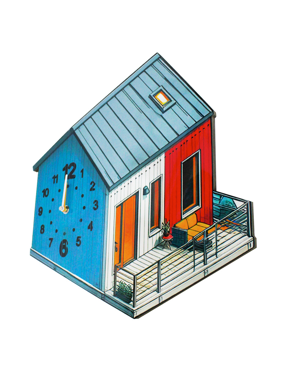 Este reloj de pared es una pieza de arte funcional que combina diseño y originalidad. Su forma de casa y la vibrante combinación de colores le dan un toque moderno y alegre a cualquier espacio. Fabricado en madera con recubrimiento de acrílico, este reloj no solo es elegante y único, sino también resistente y duradero.