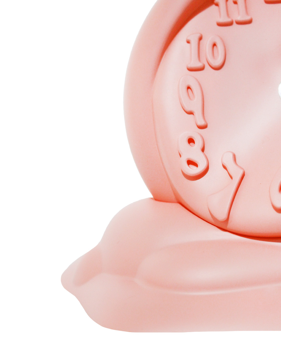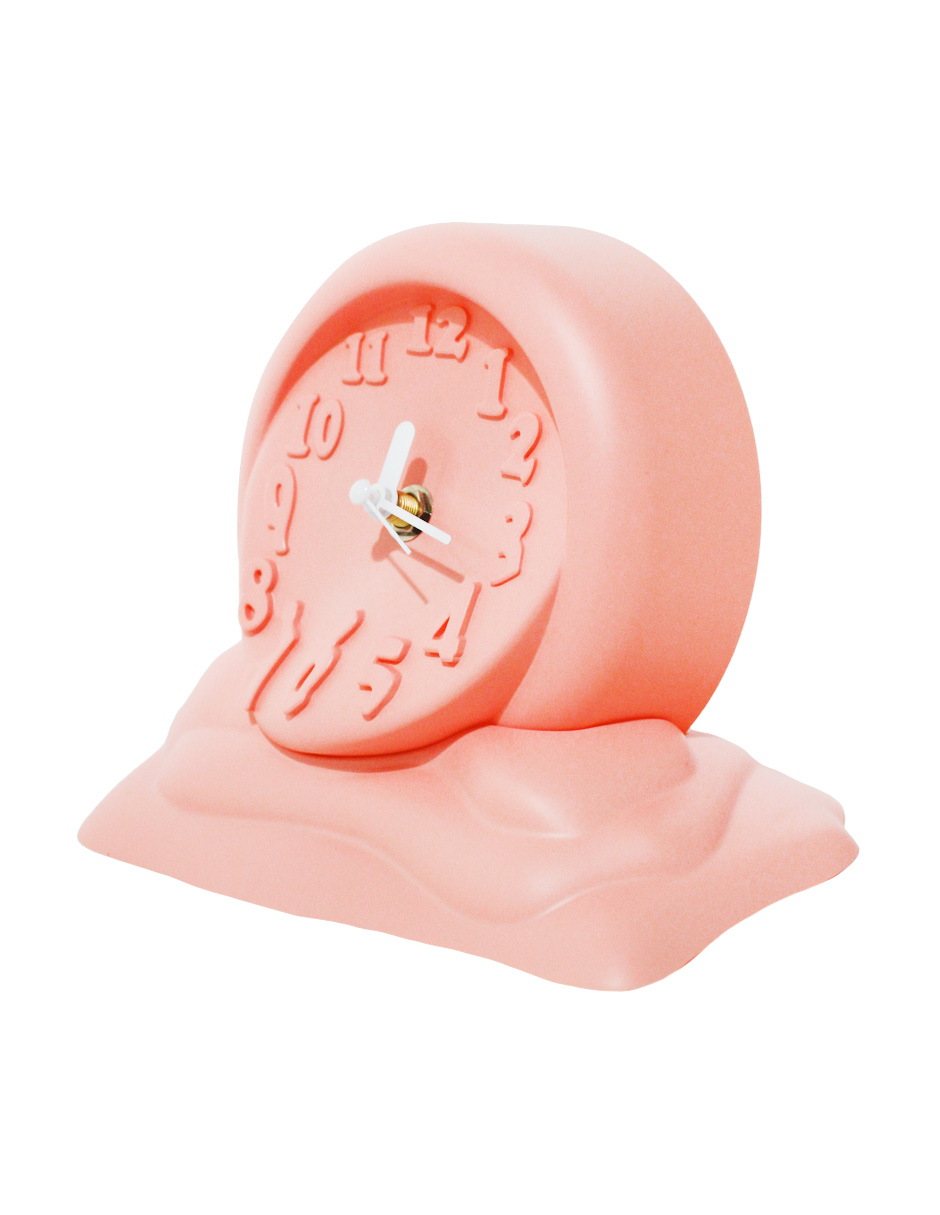 Este reloj de mesa es una pieza de arte funcional que desafía la realidad con su diseño surrealista que parece derretirse sobre la superficie. Fabricado en plástico de alta calidad, es un accesorio ligero y duradero con un acabado pulido en color rosa pastel que le da un toque moderno y sofisticado. Es la decoración perfecta para añadir encanto y originalidad a cualquier escritorio, estante o repisa, capturando las miradas de forma única.