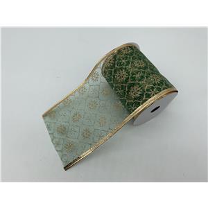 Rollo de listón de gasa verde con copos dorados de 10cmx10m