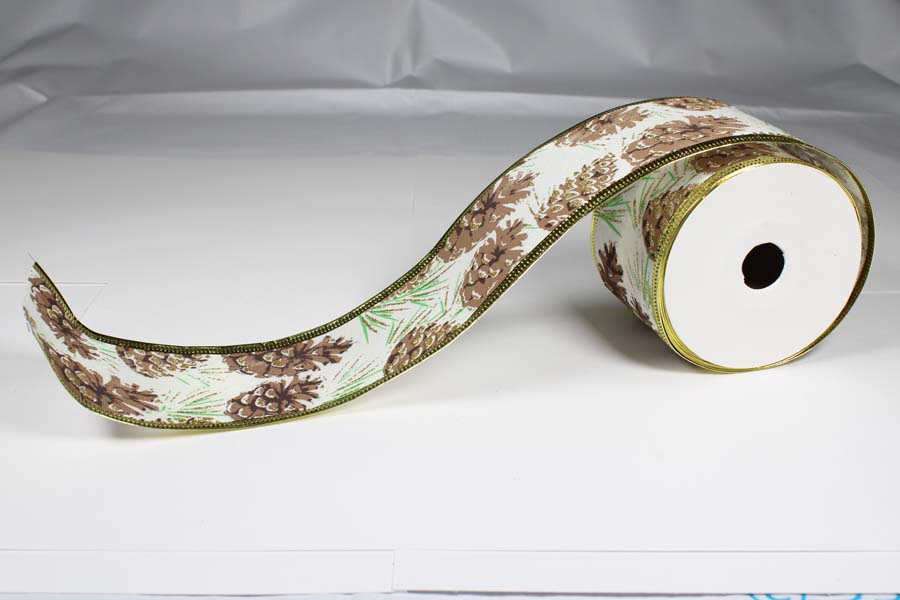 Rollo de listón de tela con piñas de 6.35cmx10m
