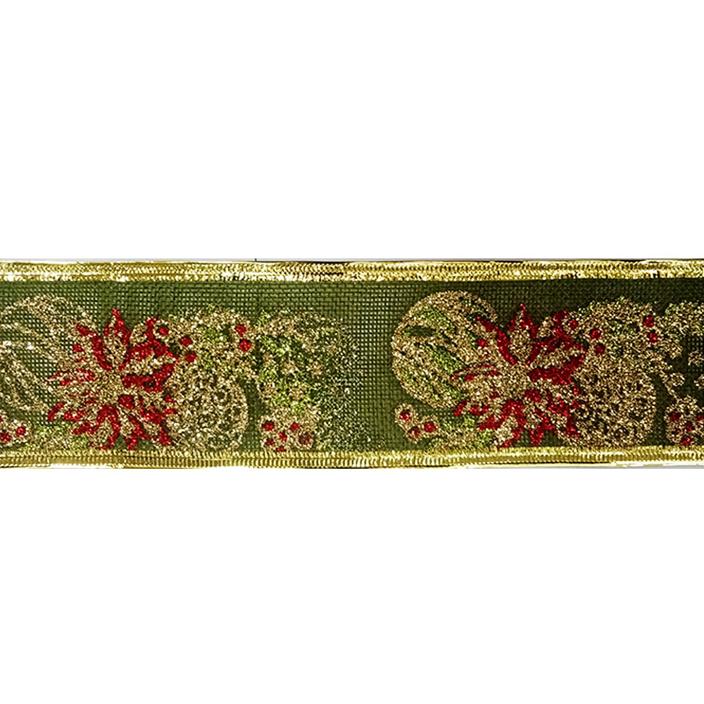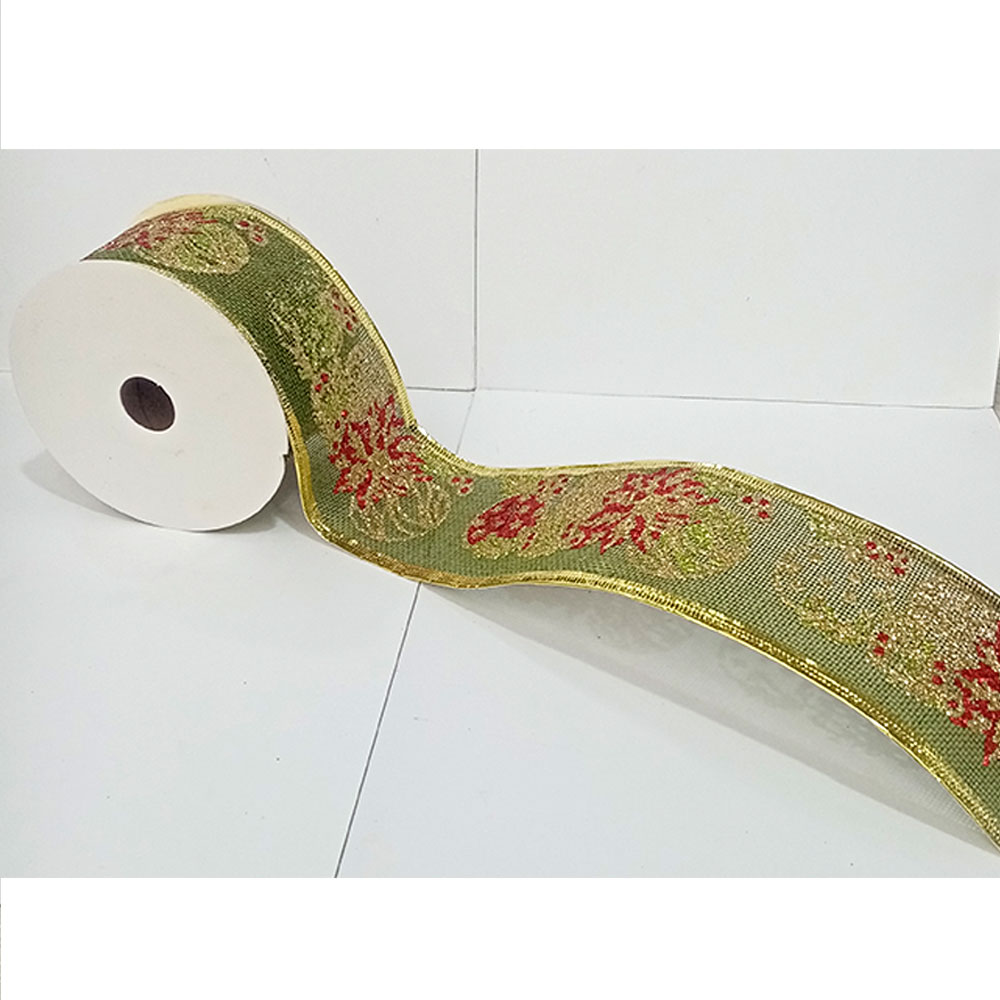 Rollo de listón de yute verde con nochebuenas de 6.35cmx10m