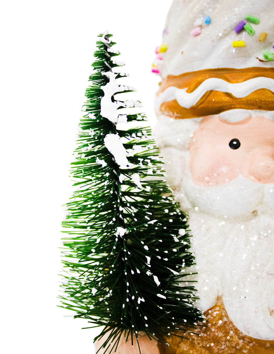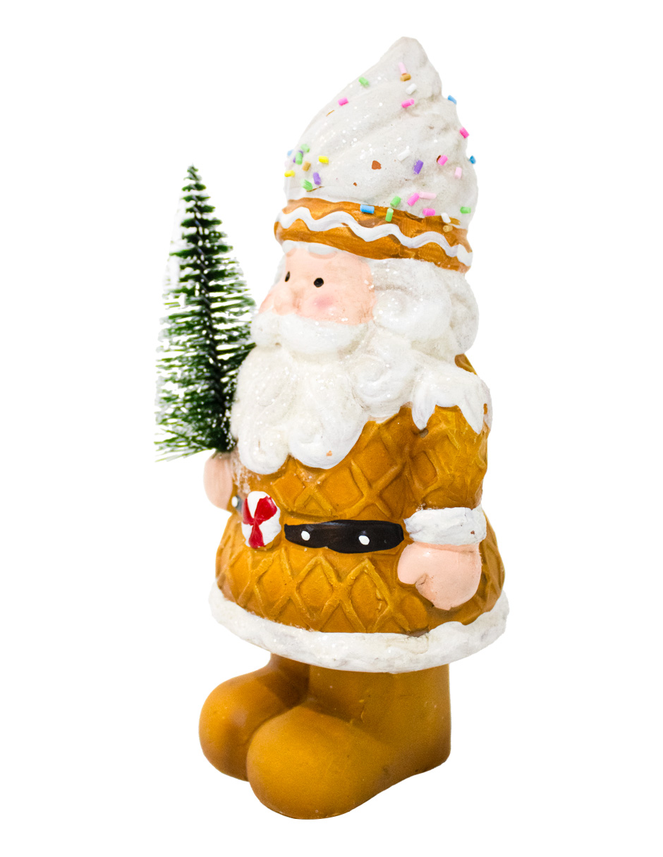 Santa con traje de jengibre y pino navideño de 10x8x18.5cm