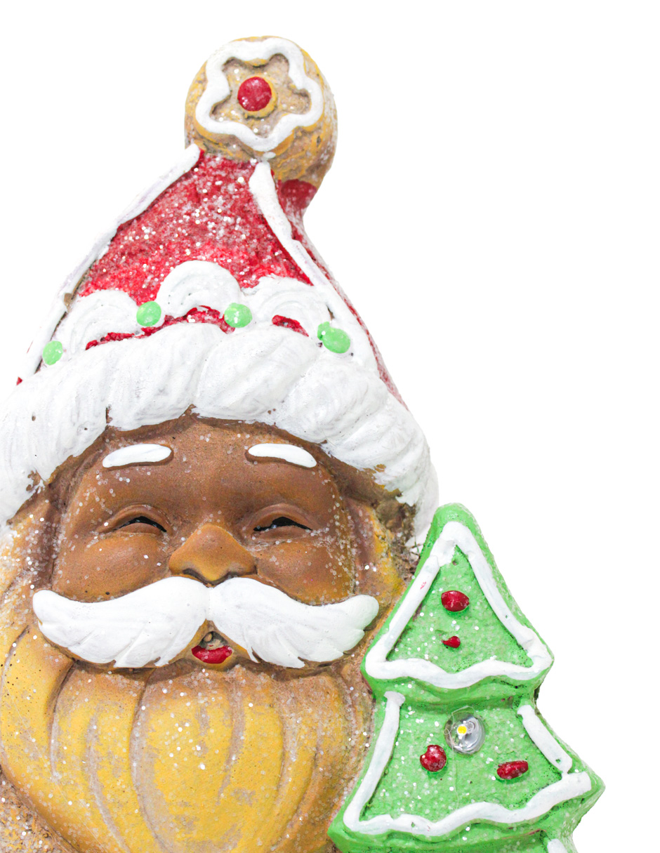 Santa de jengibre de poliresina con luz led usa baterías 3AAA no incluidas de 20×10.5x40cm