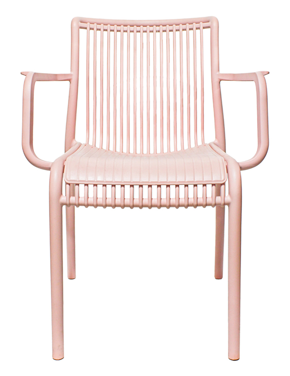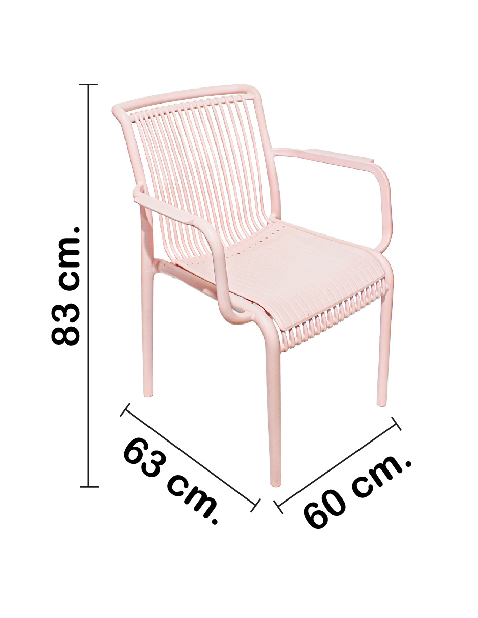 Silla de plástico con descansabrazos rosa con cojín diseño tiras de 59.8x64x83.3cm