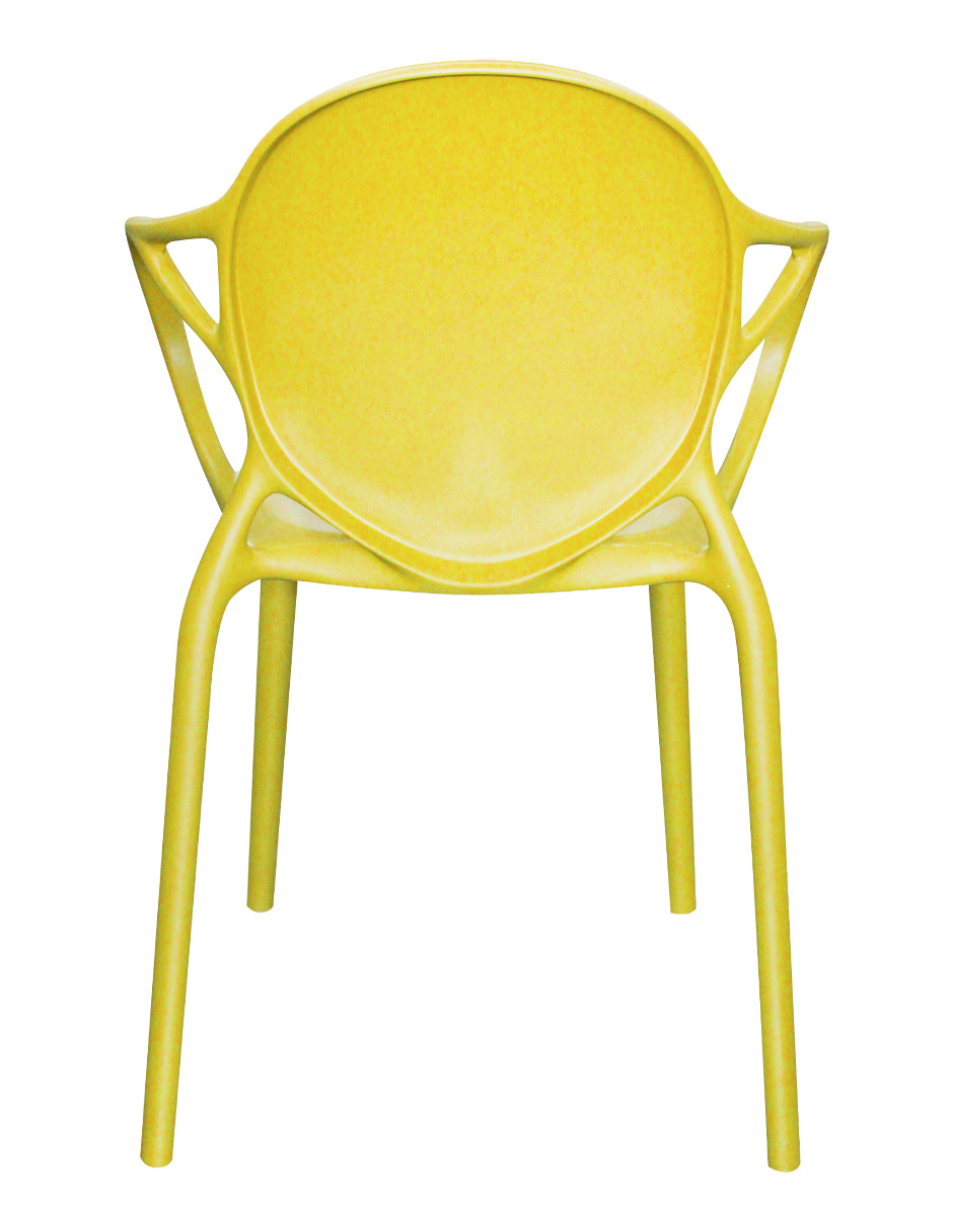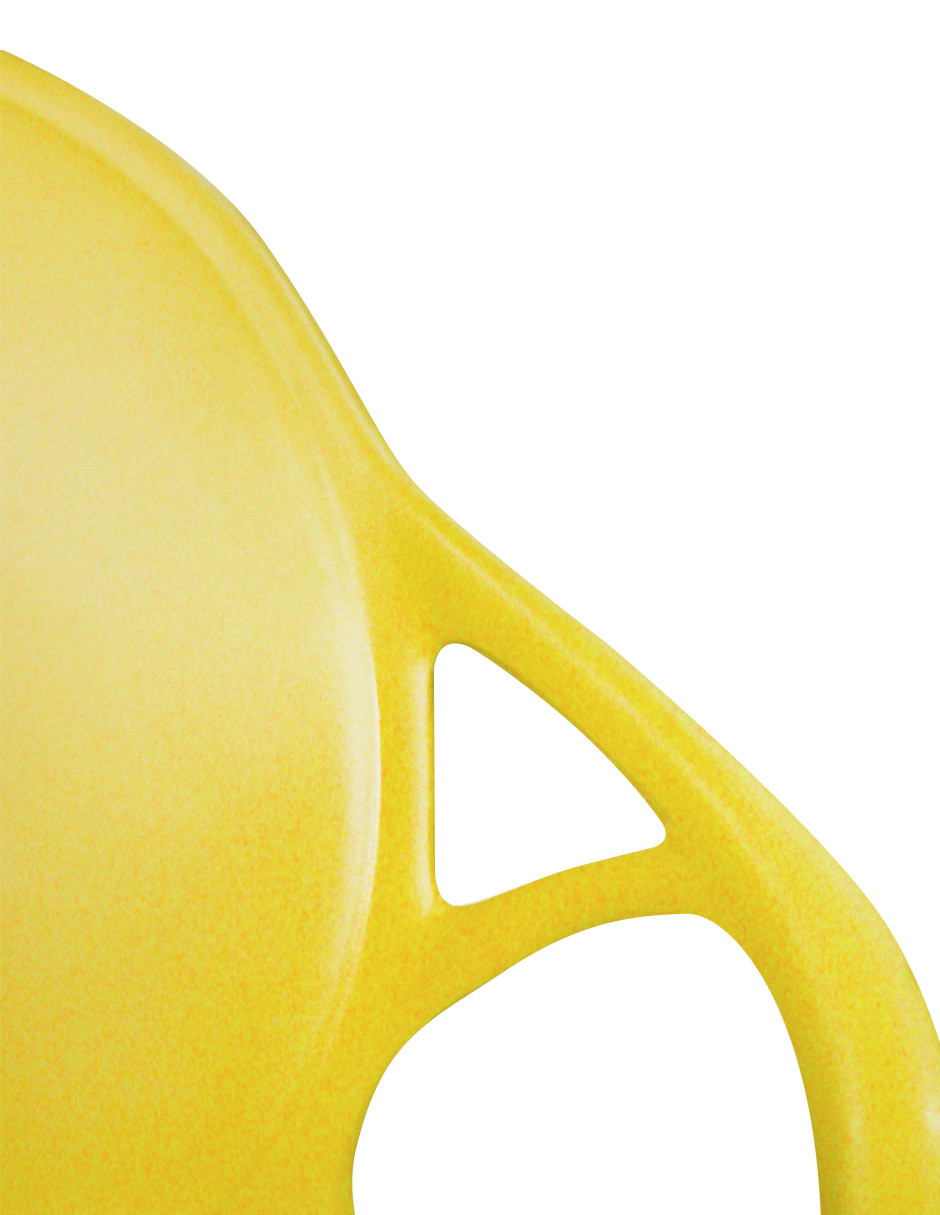 Silla de plástico mostaza con descansabrazos y respaldo redondo de 56.5x56x80 cm