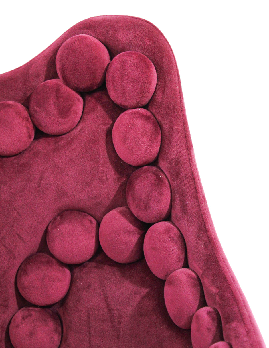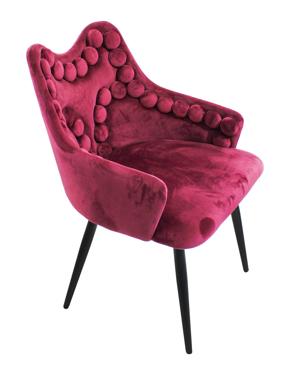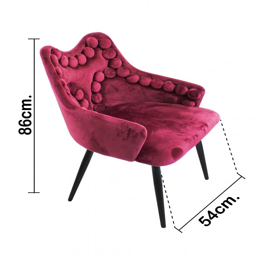 Silla de terciopelo con descansabrazos y diseño en el respaldo borgoña de 54x61x86cm