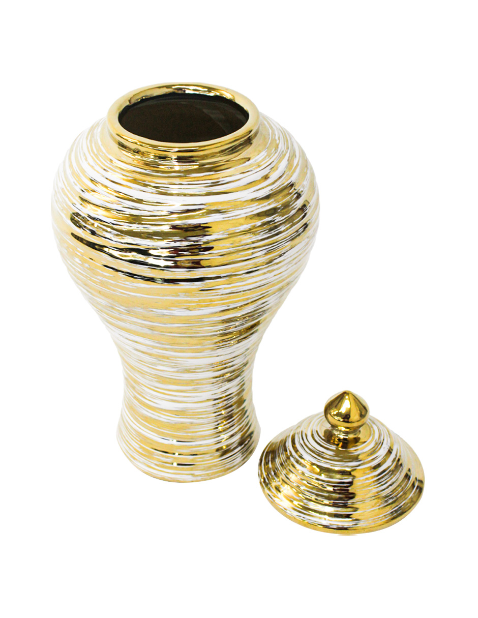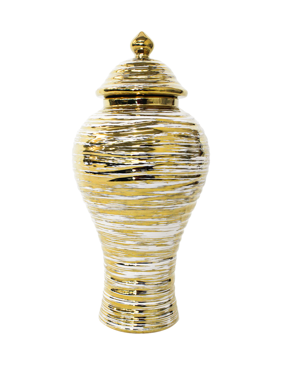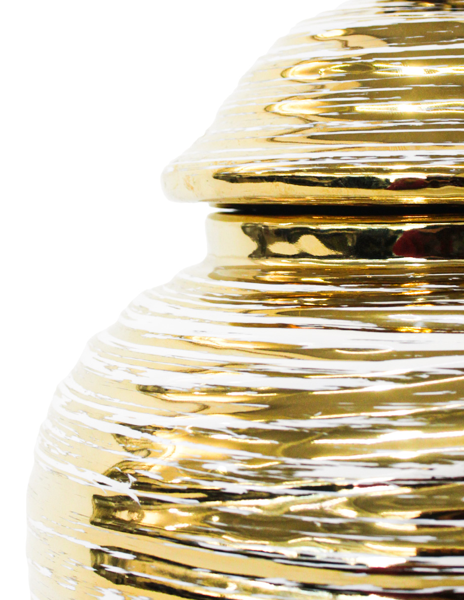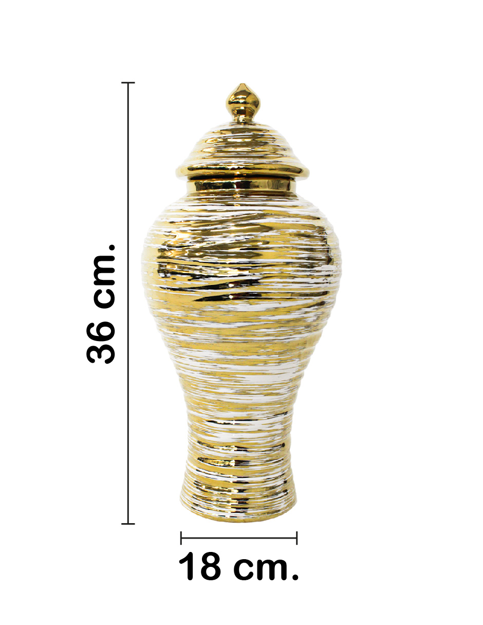 Tibor de cerámica dorada con matizado blanco de 18x18x36cm