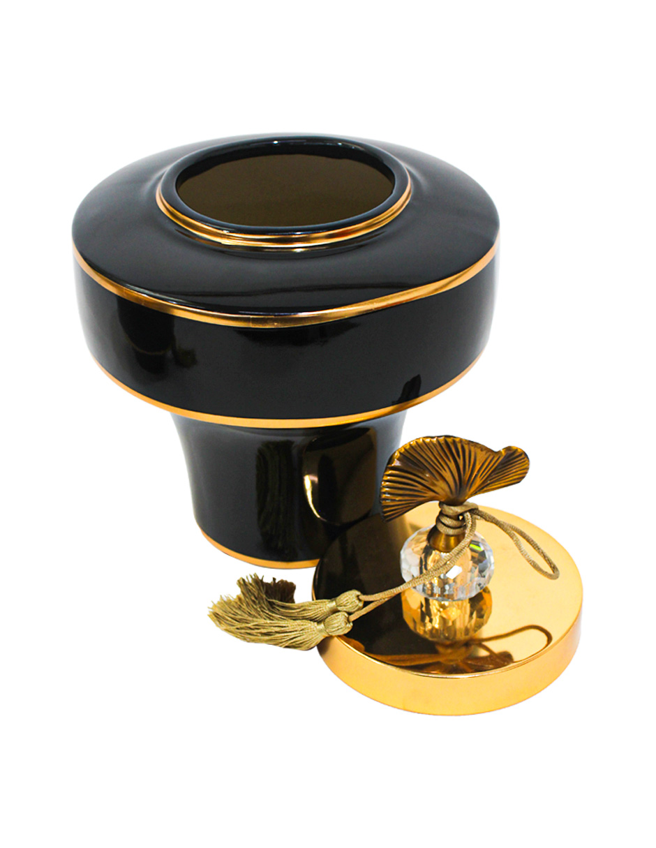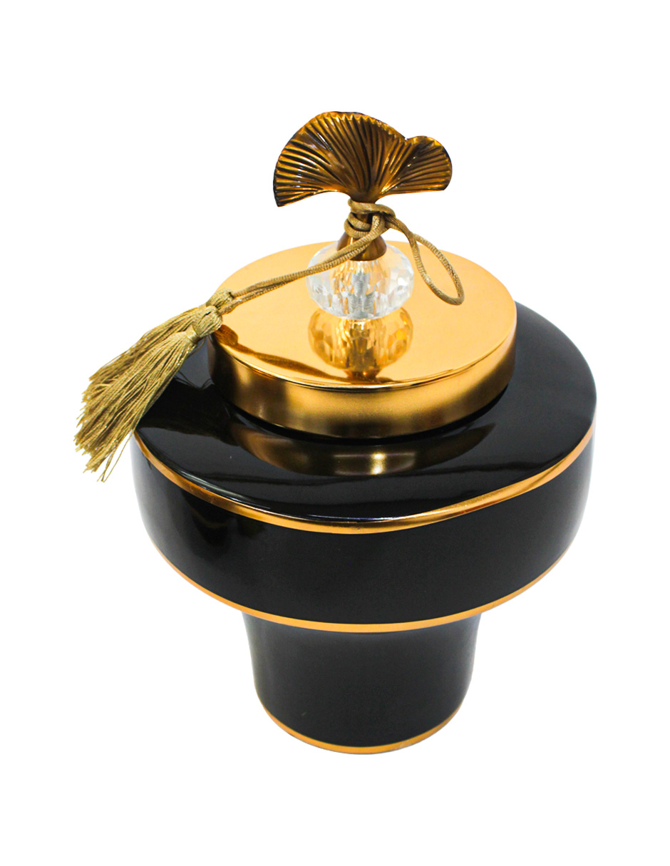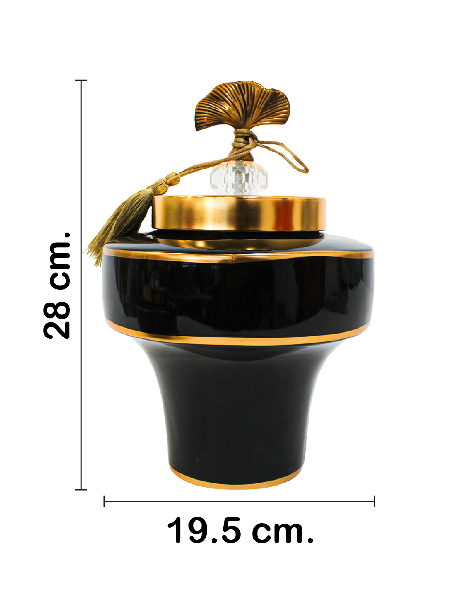 Tibor de cerámica negro con tapa dorada de 14x14x29cm