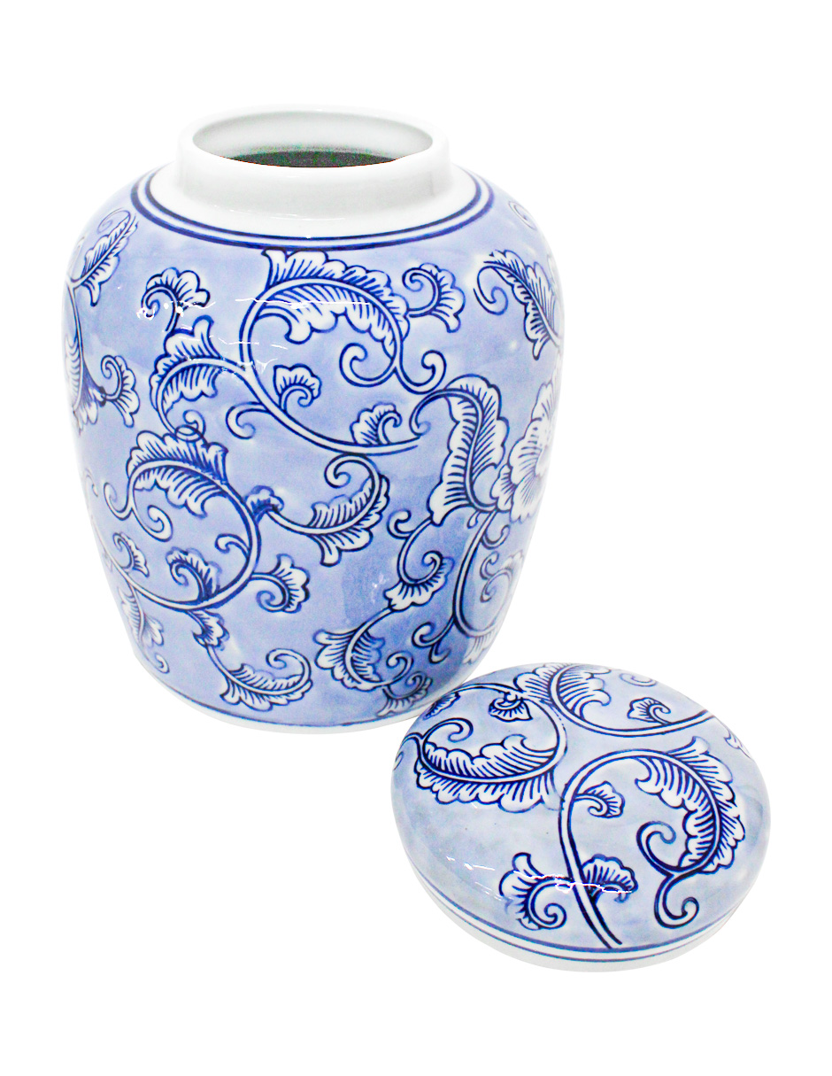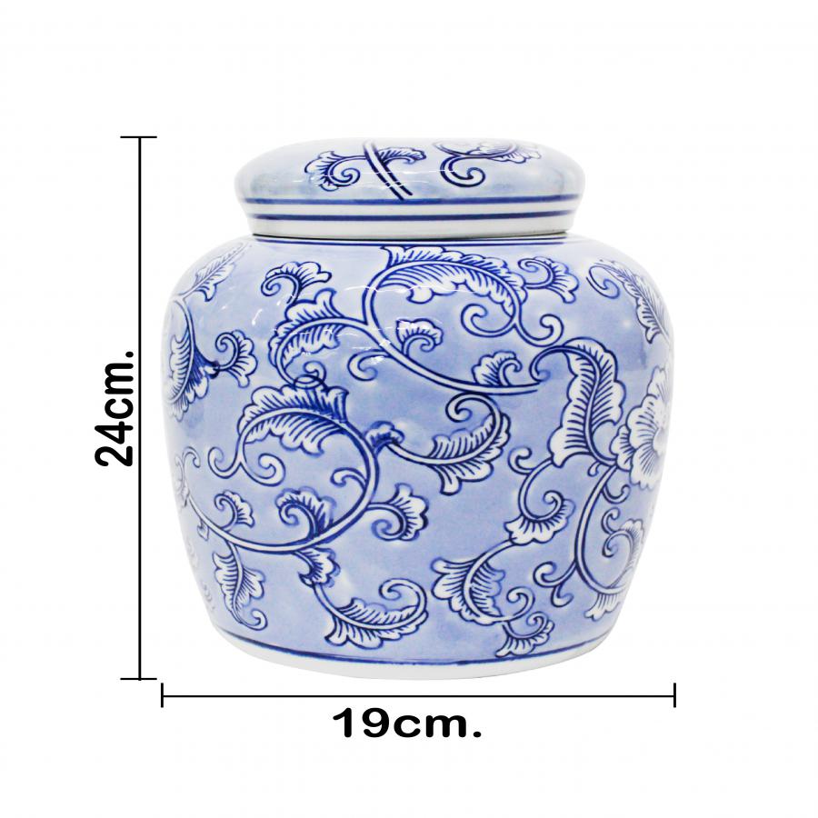 Tibor de porcelana azul estampado flores de 19x19x24cm