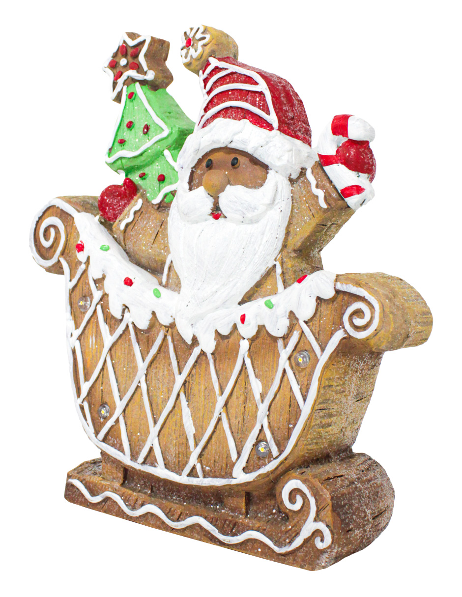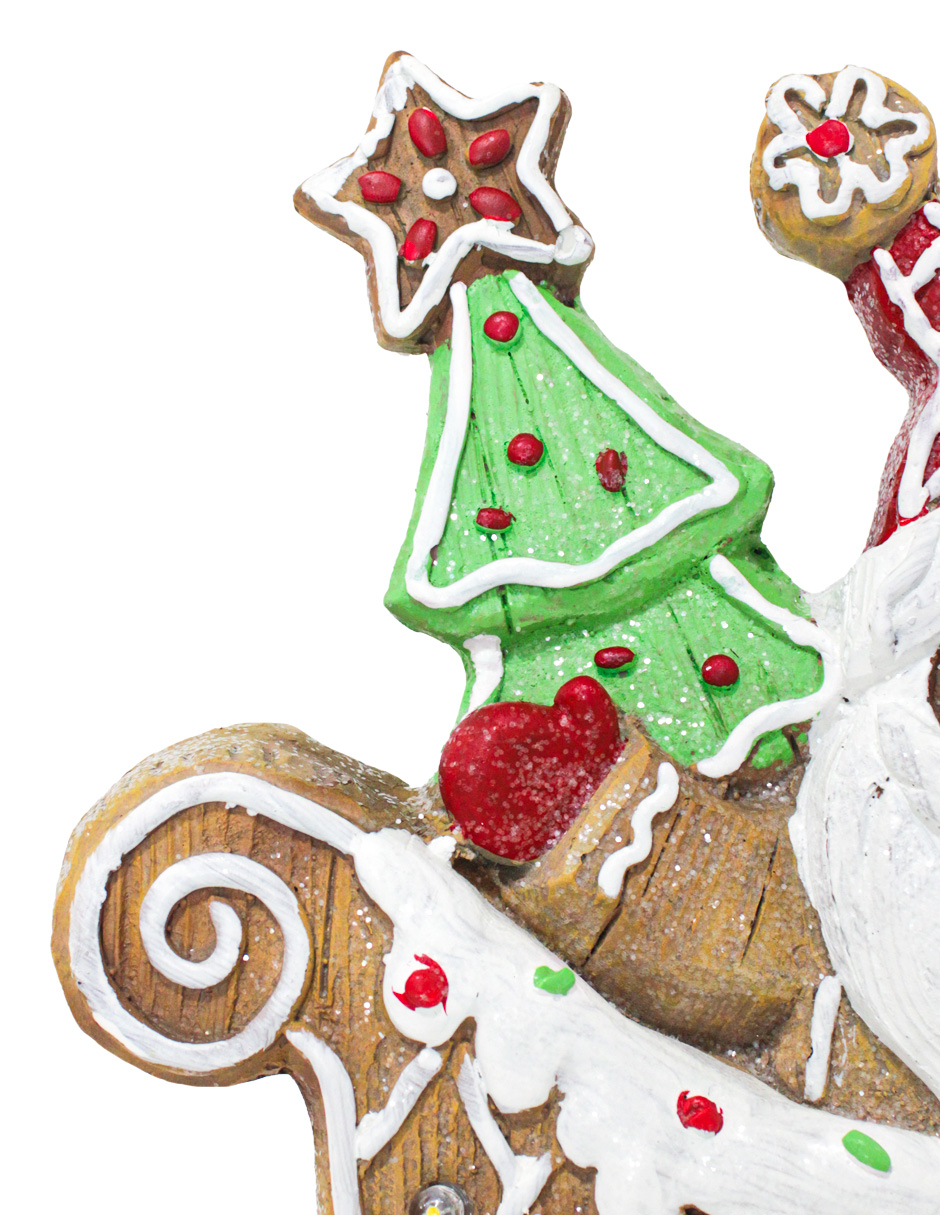 Trineo de santa de jengibre de poliresina con luz led usa baterías 3AAA no incluidas de 29.5×8.5x33c