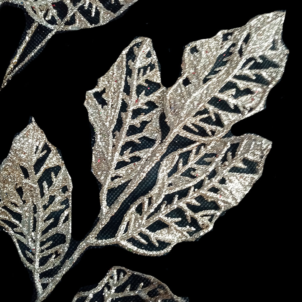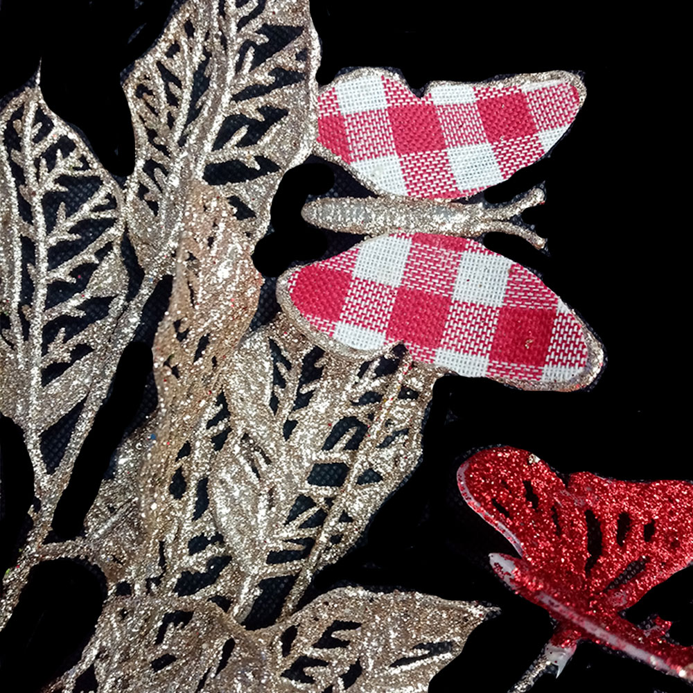 Vara de hojas doradas diamantadas con mariposas de tela roja de 81
