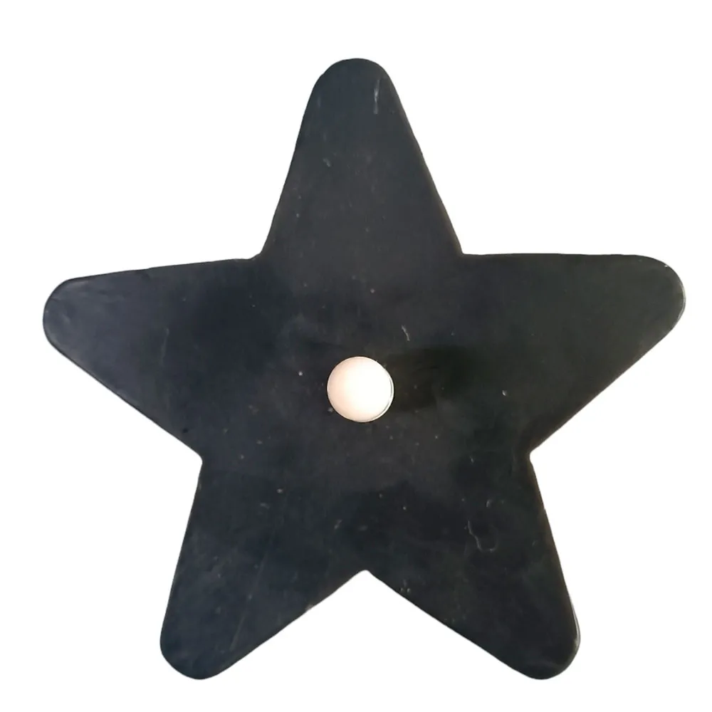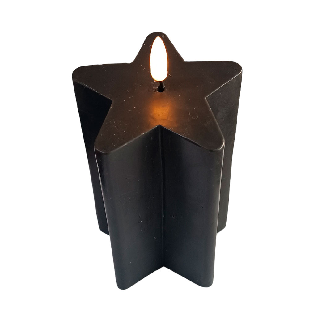 Vela de cera negra LED diseño estrella con luz calida de 10x10x15.5cm (Usa lithium 2032)
