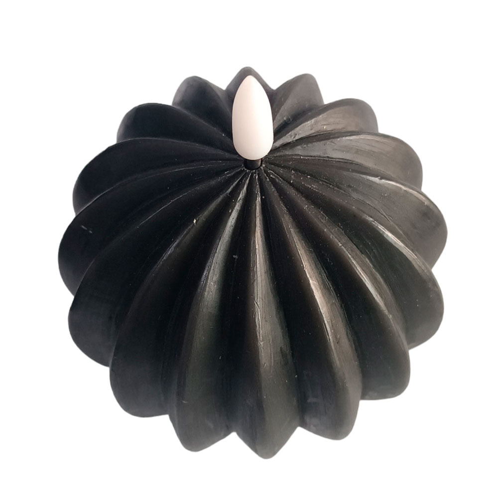 Vela de cera negra LED redonda rayada de 11x11x12.5cm (Usa lithium 2032)