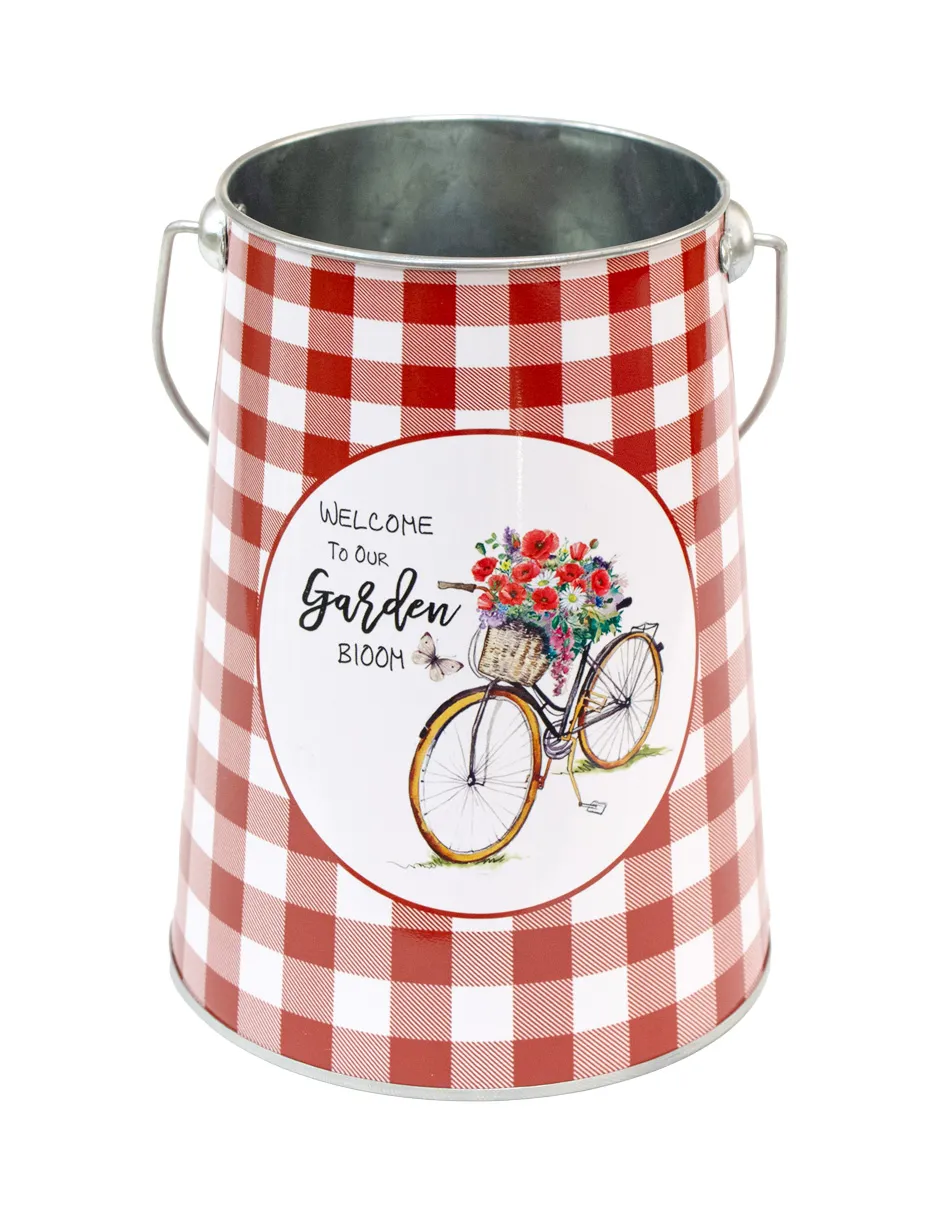 Bote con Agarradera Cuadros Rojos y Bicicleta