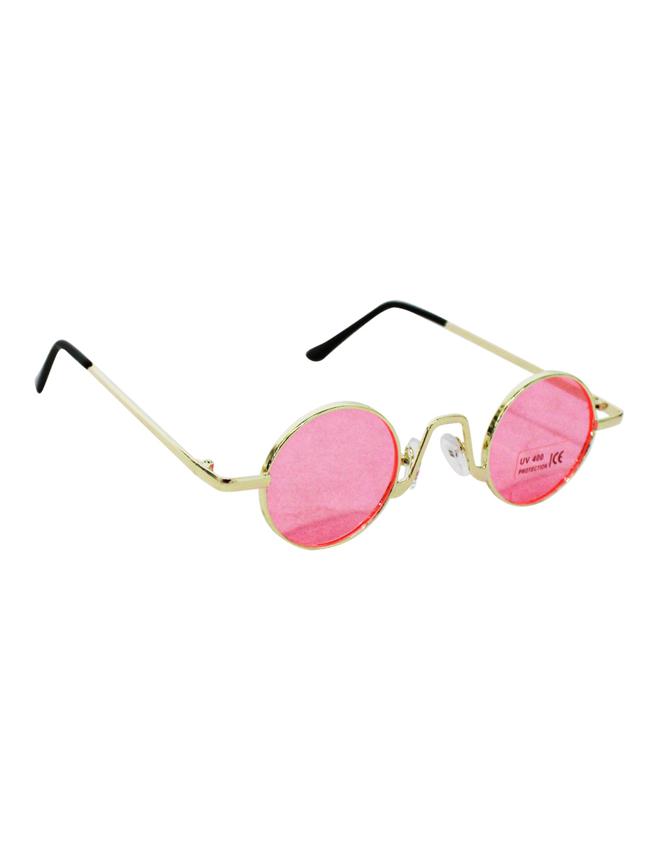 Gafas de sol estilo hippie de cristal rosa con armazón dorado de 14x15x4cm