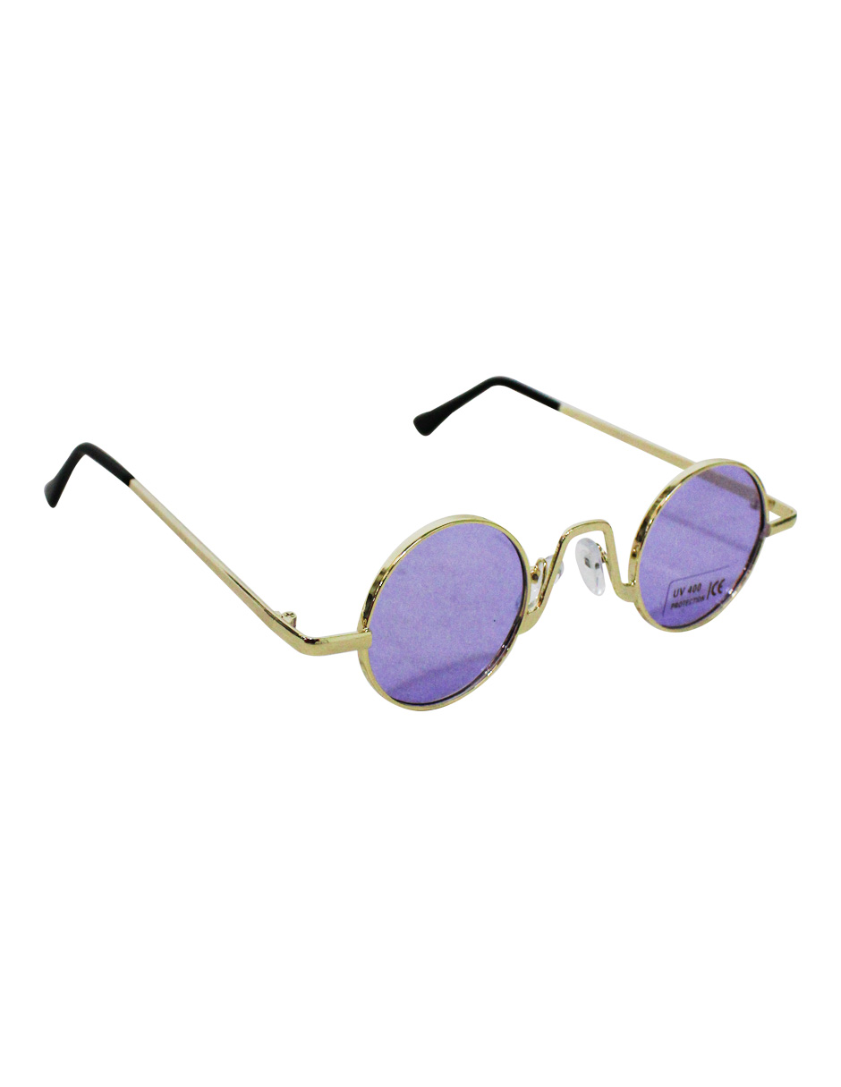 Gafas de sol estilo hippie de cristal lila con armazón dorado de 14x15x4cm