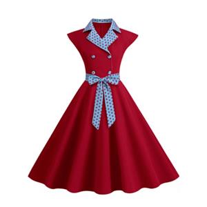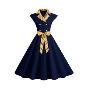 Vestido retro vintage azul marino con amarillo y puntos negros talla XL