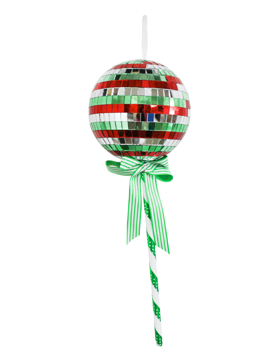 Paleta Decorativa Diseño Disco Ball Verde, Plata y Rojo