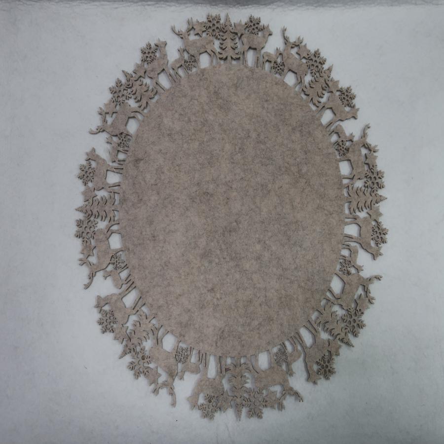 Mantel Beige con Ciervos y Copos Navideños