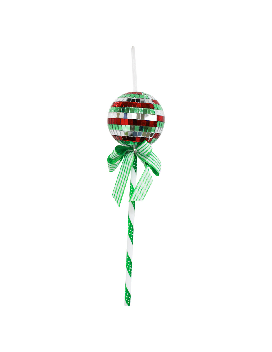 Paleta Decorativa Diseño Disco Ball Verde, Plata y Rojo
