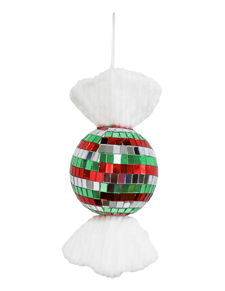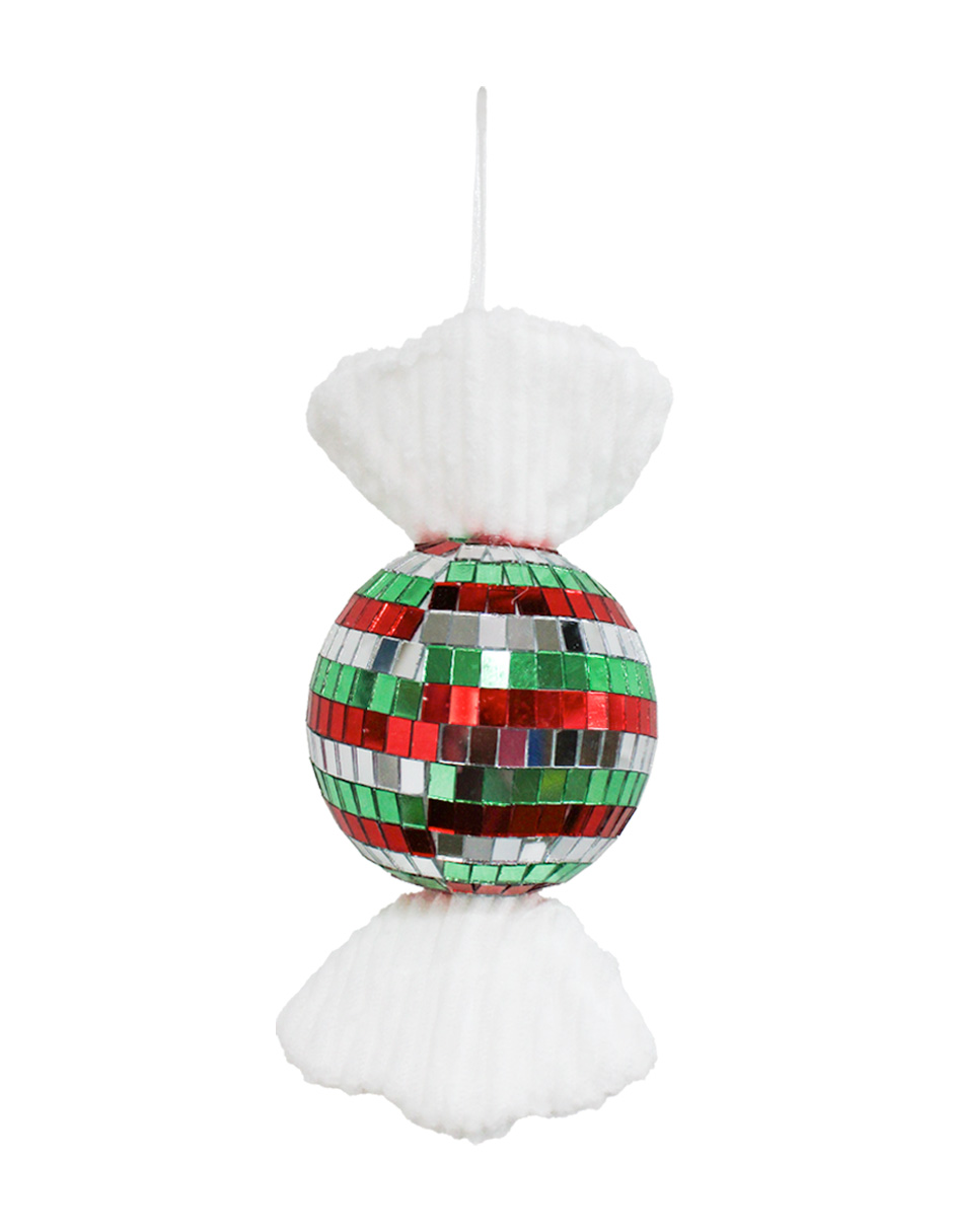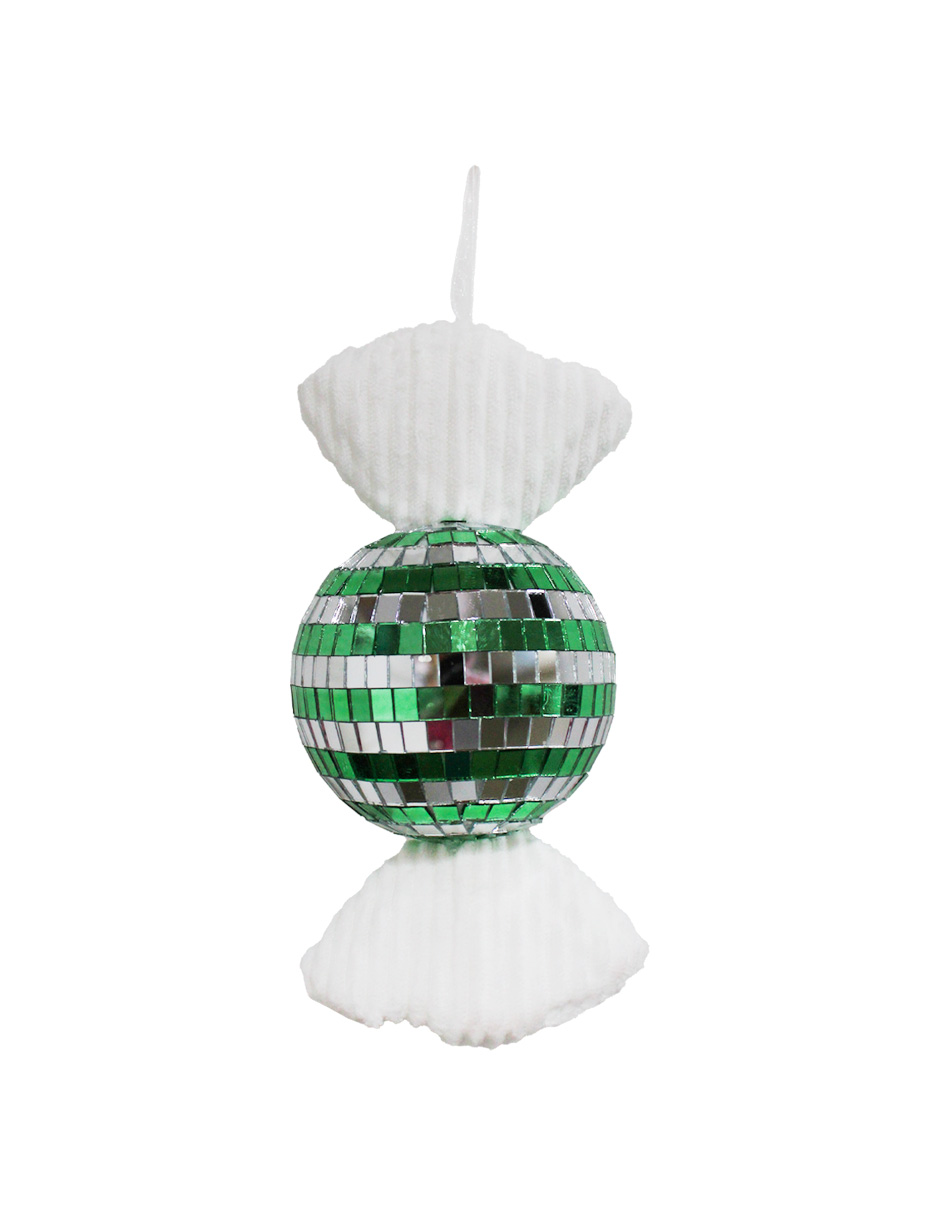 Colgante “Caramelo Disco Ball” Verde, Plata y Rojo