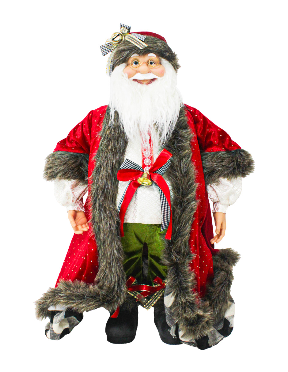 Santa Claus con Abrigo Rojo con Verde y Mangas Doradas
