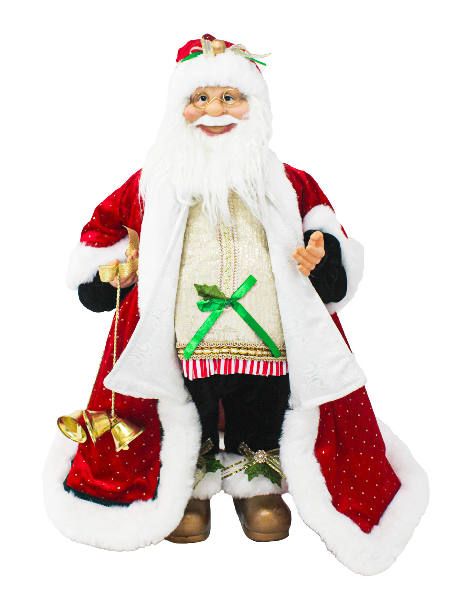 Santa Claus con Abrigo Rojo y Campanas Doradas en la Mano
